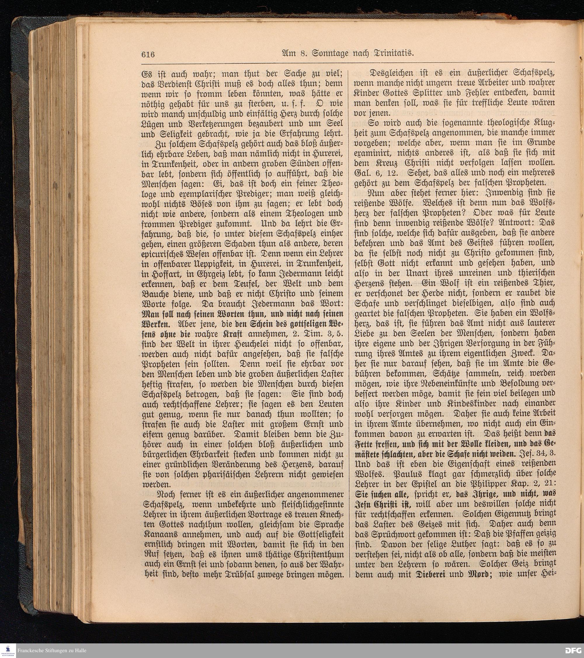 August Hermann Francke's weil.d.Theol.Prof.u.Pastor in Halle a.S., Sonn-, Fest- u. Aposteltags-Predigten, darinnen die zum wahren Christenthum gehörigen und vornehmsten Lehren behandelt sind. Aufs neue herausgegeben, verlegt und nur allein zu beziehen vom Ostpr.evang.Gebets=Verein in Berlin, Anklamstraße 31. Tilsit 1902. Gedruckt bei M. Jagomast.