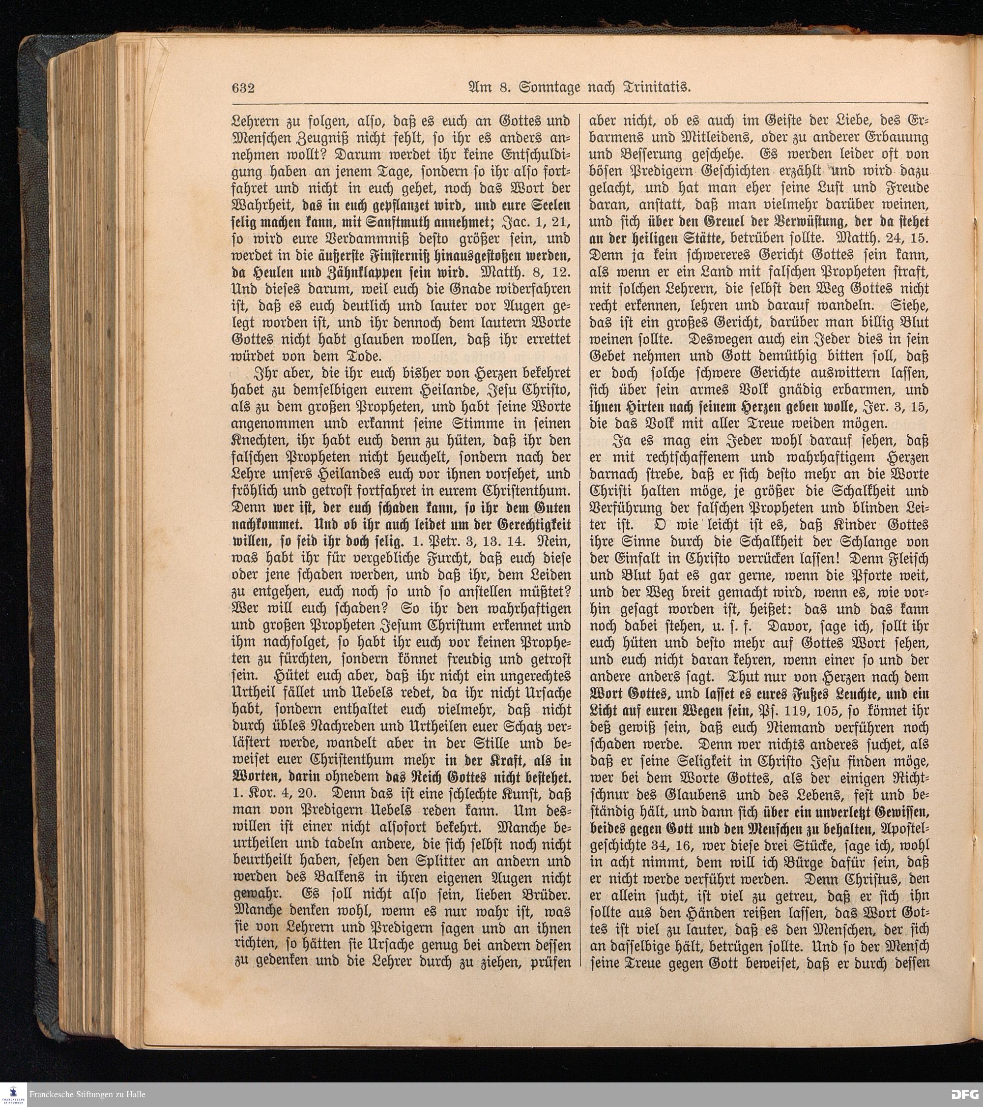 August Hermann Francke's weil.d.Theol.Prof.u.Pastor in Halle a.S., Sonn-, Fest- u. Aposteltags-Predigten, darinnen die zum wahren Christenthum gehörigen und vornehmsten Lehren behandelt sind. Aufs neue herausgegeben, verlegt und nur allein zu beziehen vom Ostpr.evang.Gebets=Verein in Berlin, Anklamstraße 31. Tilsit 1902. Gedruckt bei M. Jagomast.
