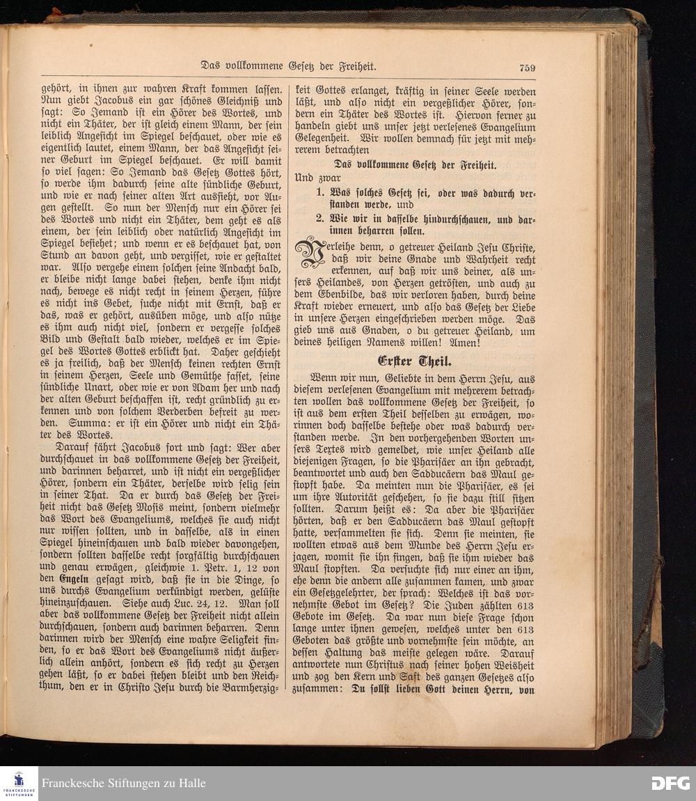 August Hermann Francke's weil.d.Theol.Prof.u.Pastor in Halle a.S., Sonn-, Fest- u. Aposteltags-Predigten, darinnen die zum wahren Christenthum gehörigen und vornehmsten Lehren behandelt sind. Aufs neue herausgegeben, verlegt und nur allein zu beziehen vom Ostpr.evang.Gebets=Verein in Berlin, Anklamstraße 31. Tilsit 1902. Gedruckt bei M. Jagomast.