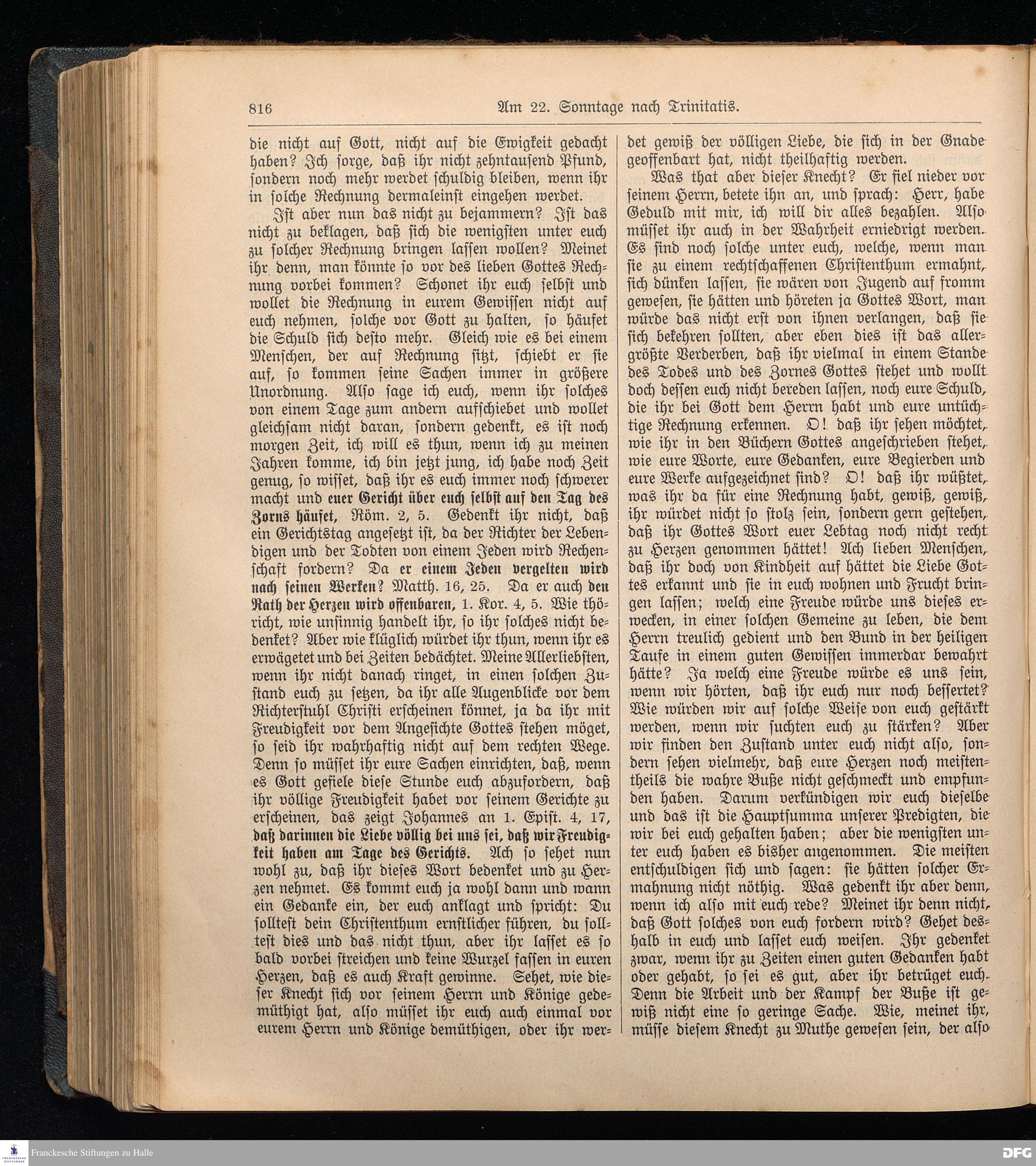 August Hermann Francke's weil.d.Theol.Prof.u.Pastor in Halle a.S., Sonn-, Fest- u. Aposteltags-Predigten, darinnen die zum wahren Christenthum gehörigen und vornehmsten Lehren behandelt sind. Aufs neue herausgegeben, verlegt und nur allein zu beziehen vom Ostpr.evang.Gebets=Verein in Berlin, Anklamstraße 31. Tilsit 1902. Gedruckt bei M. Jagomast.