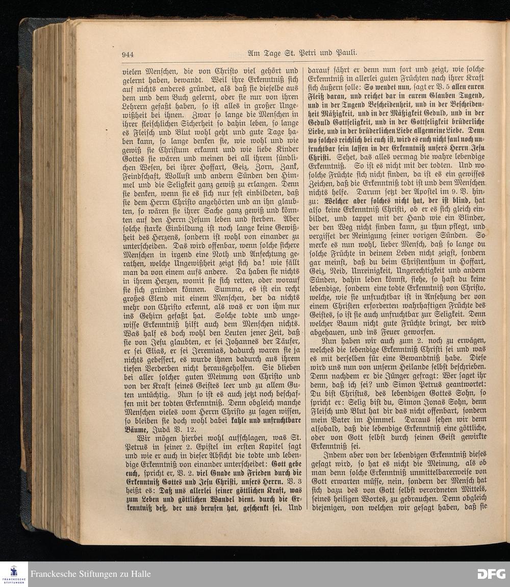 August Hermann Francke's weil.d.Theol.Prof.u.Pastor in Halle a.S., Sonn-, Fest- u. Aposteltags-Predigten, darinnen die zum wahren Christenthum gehörigen und vornehmsten Lehren behandelt sind. Aufs neue herausgegeben, verlegt und nur allein zu beziehen vom Ostpr.evang.Gebets=Verein in Berlin, Anklamstraße 31. Tilsit 1902. Gedruckt bei M. Jagomast.