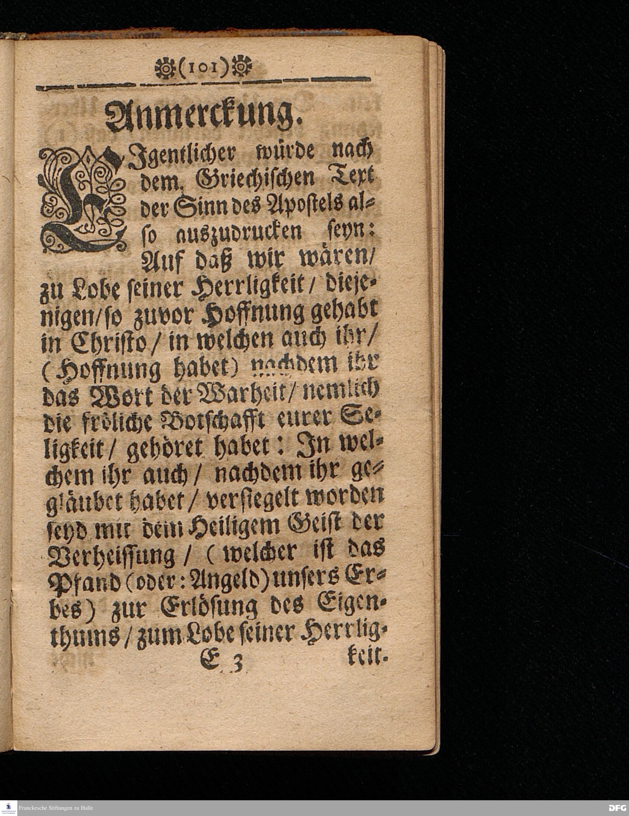 M.Aug.Hermann Franckens Gr.& Or.Lingg.Pr.Ord.& Past.Glauch. OBSERVATIONES BIBLICÆ, oder Anmerckungen über einige Oerter H. Schrifft / Darinnen die Teutsche Ubersetzung des Sel.Lutheri gegen den Original-Text gehalten und bescheidentlich gezeiget wird / Wo man dem eigentlichen Wort=Verstande näher ko\-men könne / Solches auch Zur Erbauung in der Christl.Lehre angewendet / und im Gebet appliciret wird / ausgefertiget im FEBRUARIO 1695. Halle / Gedruckt bey Christoph Salfelden.