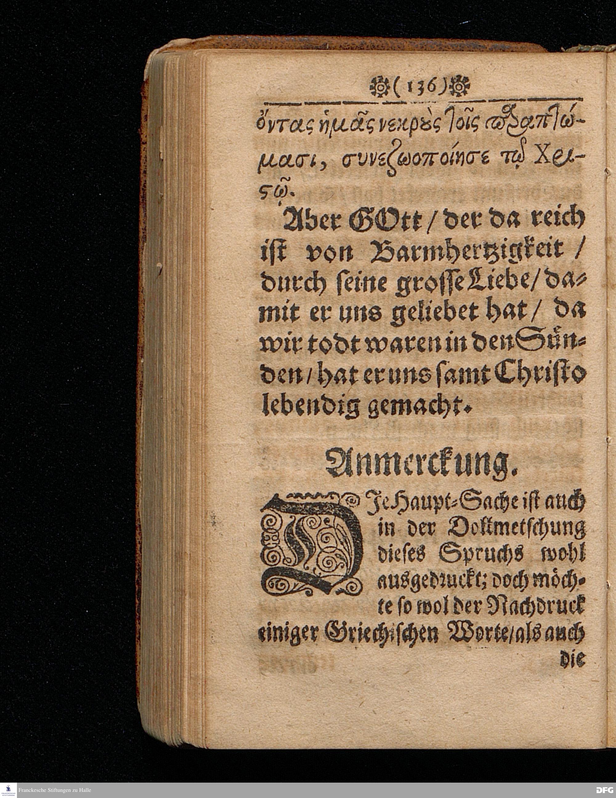 M.Aug.Hermann Franckens Gr.& Or.Lingg.Pr.Ord.& Past.Glauch. OBSERVATIONES BIBLICÆ, oder Anmerckungen über einige Oerter H. Schrifft / Darinnen die Teutsche Ubersetzung des Sel.Lutheri gegen den Original-Text gehalten und bescheidentlich gezeiget wird / Wo man dem eigentlichen Wort=Verstande näher ko\-men könne / Solches auch Zur Erbauung in der Christl.Lehre angewendet / und im Gebet appliciret wird / ausgefertiget im FEBRUARIO 1695. Halle / Gedruckt bey Christoph Salfelden.