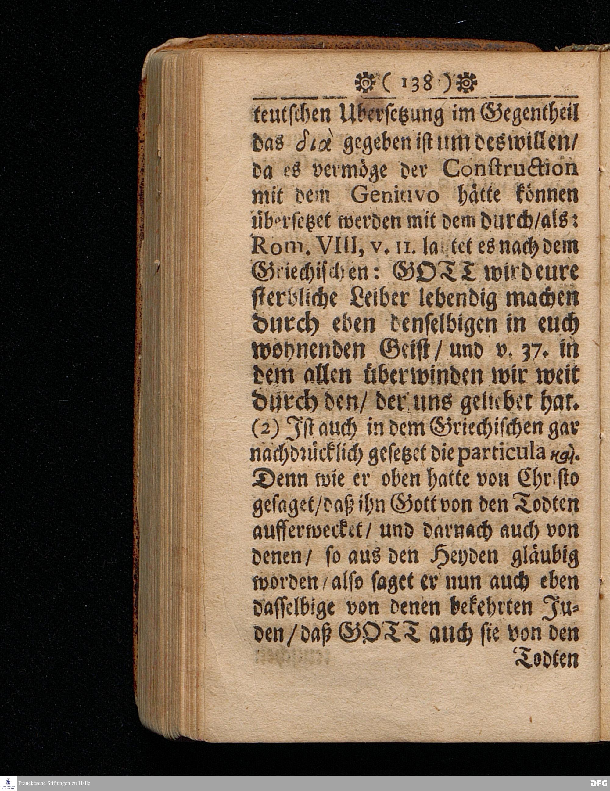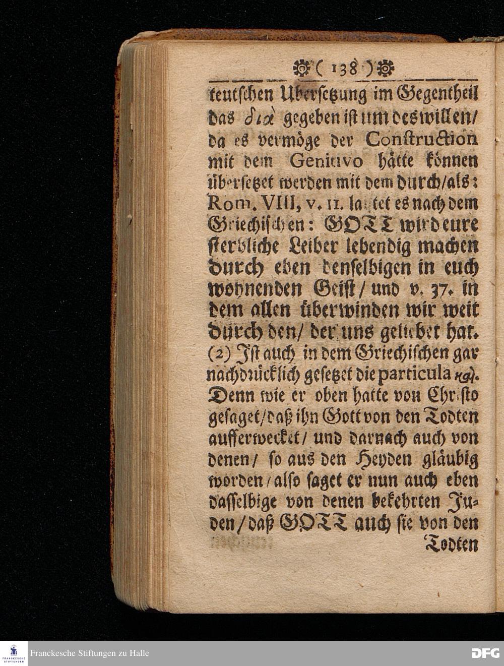 M.Aug.Hermann Franckens Gr.& Or.Lingg.Pr.Ord.& Past.Glauch. OBSERVATIONES BIBLICÆ, oder Anmerckungen über einige Oerter H. Schrifft / Darinnen die Teutsche Ubersetzung des Sel.Lutheri gegen den Original-Text gehalten und bescheidentlich gezeiget wird / Wo man dem eigentlichen Wort=Verstande näher ko\-men könne / Solches auch Zur Erbauung in der Christl.Lehre angewendet / und im Gebet appliciret wird / ausgefertiget im FEBRUARIO 1695. Halle / Gedruckt bey Christoph Salfelden.