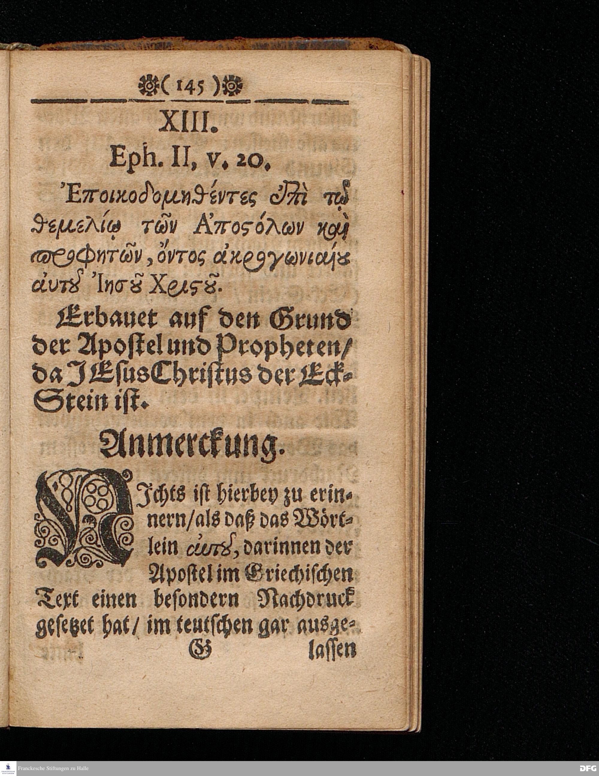 M.Aug.Hermann Franckens Gr.& Or.Lingg.Pr.Ord.& Past.Glauch. OBSERVATIONES BIBLICÆ, oder Anmerckungen über einige Oerter H. Schrifft / Darinnen die Teutsche Ubersetzung des Sel.Lutheri gegen den Original-Text gehalten und bescheidentlich gezeiget wird / Wo man dem eigentlichen Wort=Verstande näher ko\-men könne / Solches auch Zur Erbauung in der Christl.Lehre angewendet / und im Gebet appliciret wird / ausgefertiget im FEBRUARIO 1695. Halle / Gedruckt bey Christoph Salfelden.