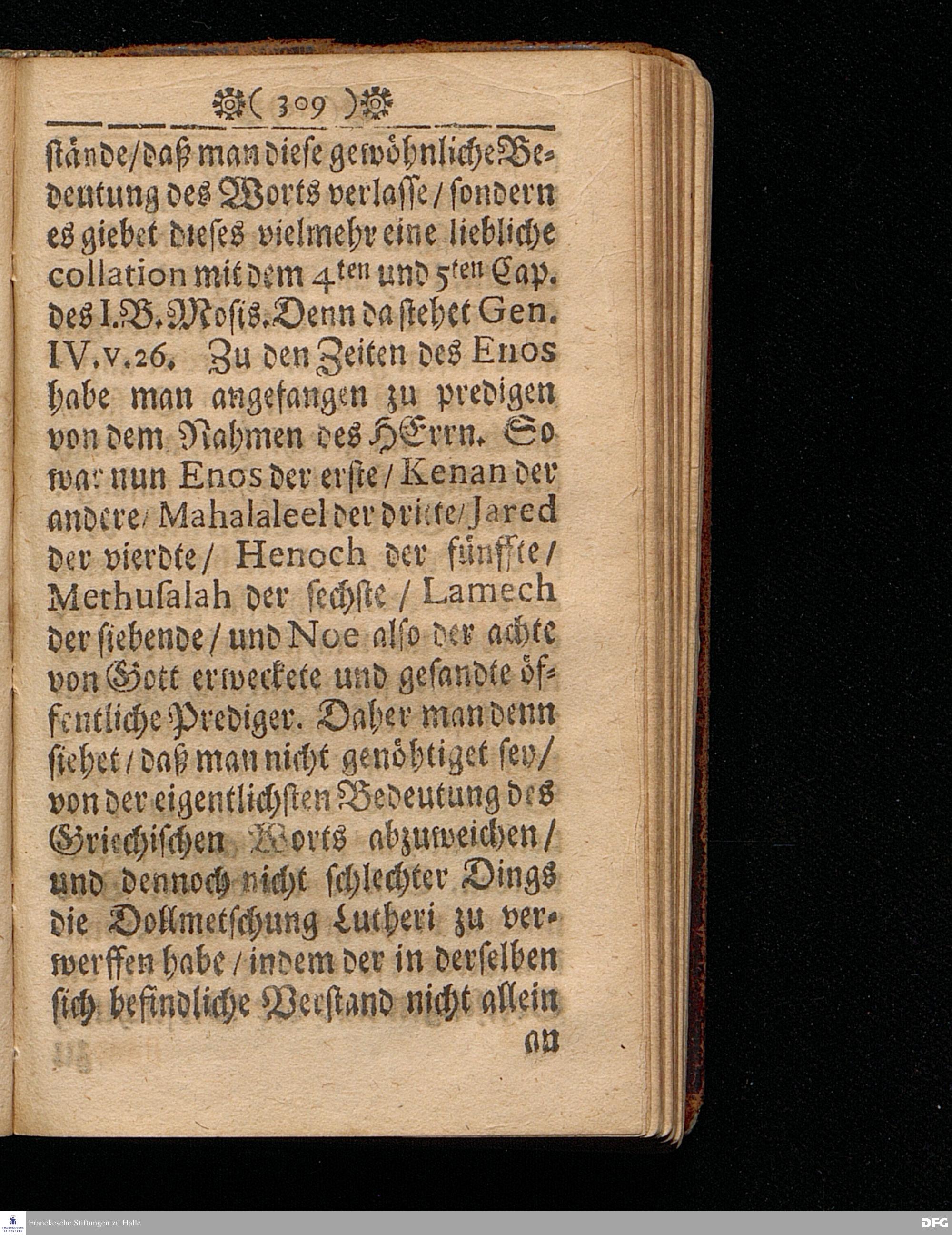 M.Aug.Hermann Franckens Gr.& Or.Lingg.Pr.Ord.& Past.Glauch. OBSERVATIONES BIBLICÆ, oder Anmerckungen über einige Oerter H. Schrifft / Darinnen die Teutsche Ubersetzung des Sel.Lutheri gegen den Original-Text gehalten und bescheidentlich gezeiget wird / Wo man dem eigentlichen Wort=Verstande näher ko\-men könne / Solches auch Zur Erbauung in der Christl.Lehre angewendet / und im Gebet appliciret wird / ausgefertiget im MARTIO 1695. Halle / Gedruckt bey Christoph Salfelden.