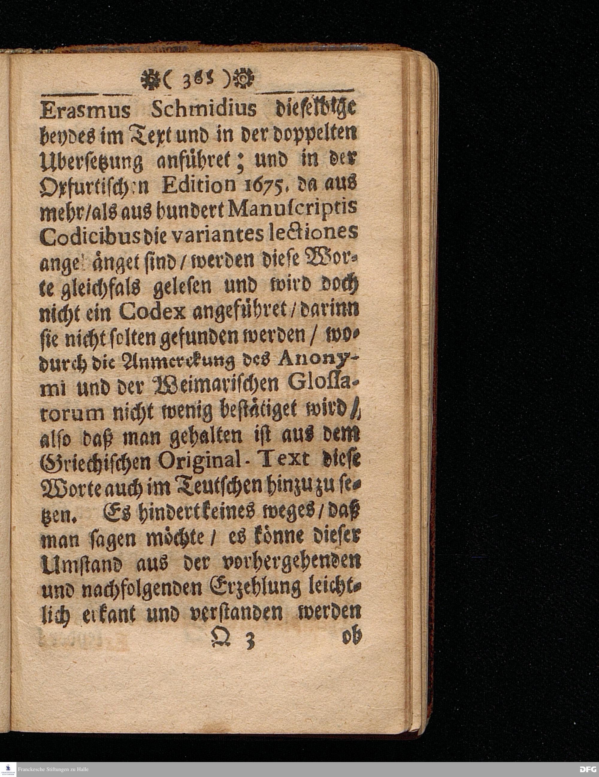 M.Aug.Hermann Franckens Gr.& Or.Lingg.Pr.Ord.& Past.Glauch. OBSERVATIONES BIBLICÆ, oder Anmerckungen über einige Oerter H. Schrifft / Darinnen die Teutsche Ubersetzung des Sel.Lutheri gegen den Original Text gehalten und bescheidentlich gezeiget wird / Wo man dem eigentlichen Wort=Verstande näher ko\-men könne / Solches auch Zur Erbauung in der Christl.Lehre angewendet / und im Gebet appliciret wird / ausgefertiget im APRILI 1695. Halle / Gedruckt bey Christoph Salfelden.
