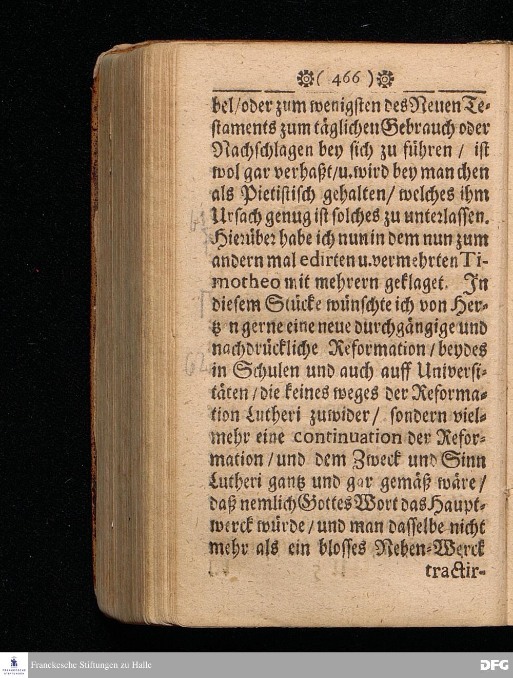 M.Aug.Hermann Franckens Gr.& Or.Lingg.Pr.Ord.& Past.Glauch. Warhafftiger Bericht von Denen bishero Monatlich herausgegebenen OBSERVATIONIBUS BIBLICIS, oder Anmerckungen über einige Oerter H. Schrifft / Dem bisherigen so münd= als schrifftlichen Widerspruch entgegen gesetzet Und heraus gegeben an statt des sonst rückständigen Maji 1695. Halle / Gedruckt bey Christoph Salfelden.