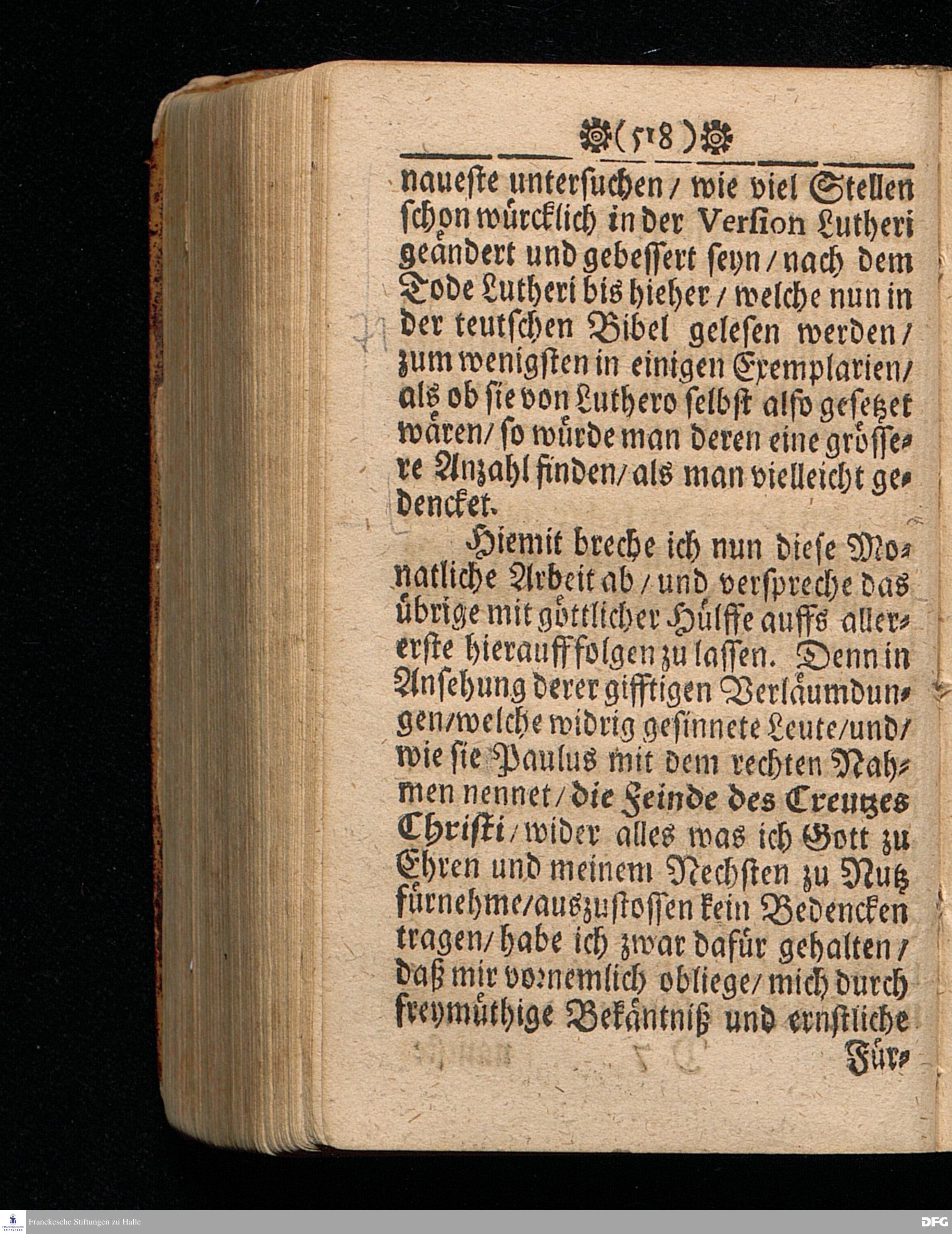 M.Aug.Hermann Franckens Gr.& Or.Lingg.Pr.Ord.& Past.Glauch. Warhafftiger Bericht von Denen bishero Monatlich herausgegebenen OBSERVATIONIBUS BIBLICIS, oder Anmerckungen über einige Oerter H. Schrifft / Dem bisherigen so münd= als schrifftlichen Widerspruch entgegen gesetzet Und heraus gegeben an statt des sonst rückständigen Maji 1695. Halle / Gedruckt bey Christoph Salfelden.