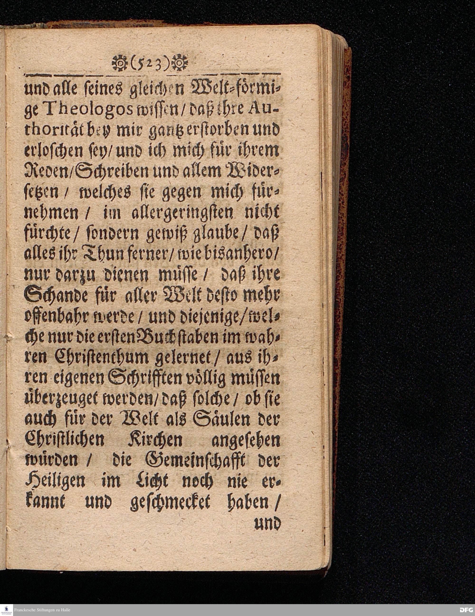 M.Aug.Hermann Franckens Gr.& Or.Lingg.Pr.Ord.& Past.Glauch. Warhafftiger Bericht von Denen bishero Monatlich herausgegebenen OBSERVATIONIBUS BIBLICIS, oder Anmerckungen über einige Oerter H. Schrifft / Dem bisherigen so münd= als schrifftlichen Widerspruch entgegen gesetzet Und heraus gegeben an statt des sonst rückständigen Maji 1695. Halle / Gedruckt bey Christoph Salfelden.
