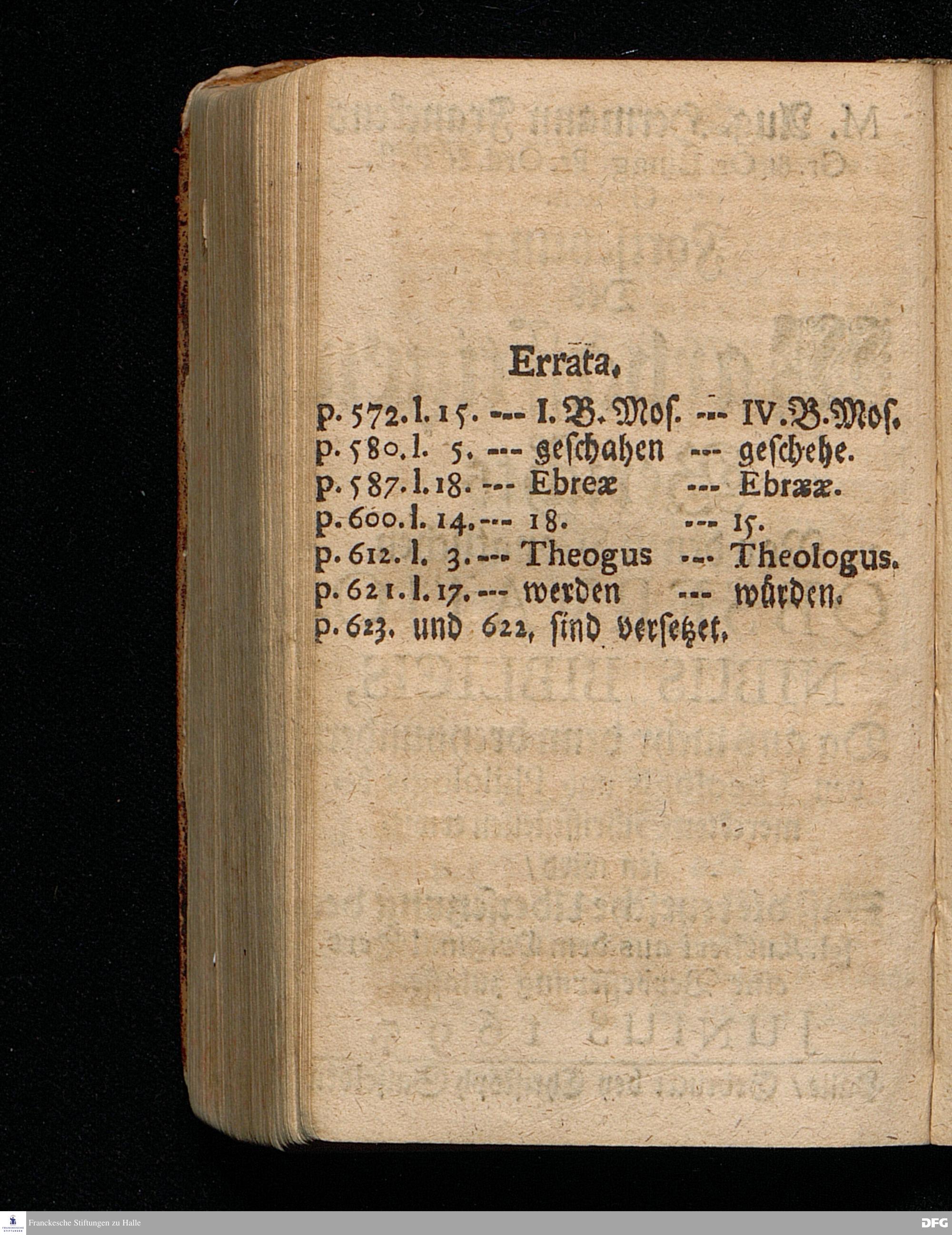 M.Aug.Hermann Franckens Gr.& Or.Lingg.Pr.Ord.& Past.Glauch. Fortsetzung Des Warhafftigen Berichts Von denen Monatlichen OBSERVATIONIBUS BIBLICIS, Da aus mehr denn dreyhundert von Theologis und Philologis bemerckten Schrifftstellen erwiesen wird / Daß die teutsche Ubersetzung des sel.Lutheri aus dem Original=Text eine Verbesserung zulasse. JUNIUS 1695. Halle / Gedruckt bey Christoph Salfelden.