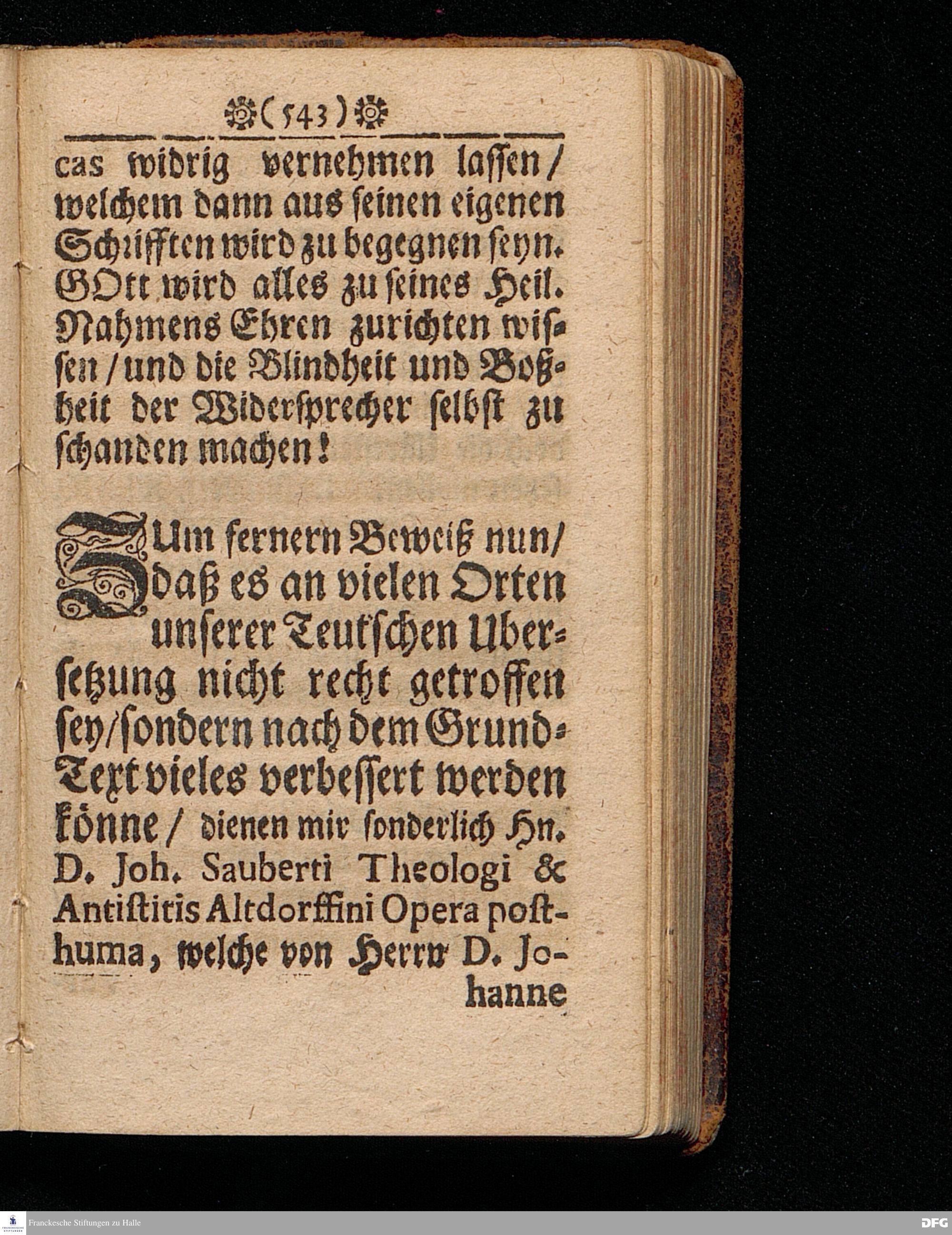 M.Aug.Hermann Franckens Gr.& Or.Lingg.Pr.Ord.& Past.Glauch. Fortsetzung Des Warhafftigen Berichts Von denen Monatlichen OBSERVATIONIBUS BIBLICIS, Da aus mehr denn dreyhundert von Theologis und Philologis bemerckten Schrifftstellen erwiesen wird / Daß die teutsche Ubersetzung des sel.Lutheri aus dem Original=Text eine Verbesserung zulasse. JUNIUS 1695. Halle / Gedruckt bey Christoph Salfelden.