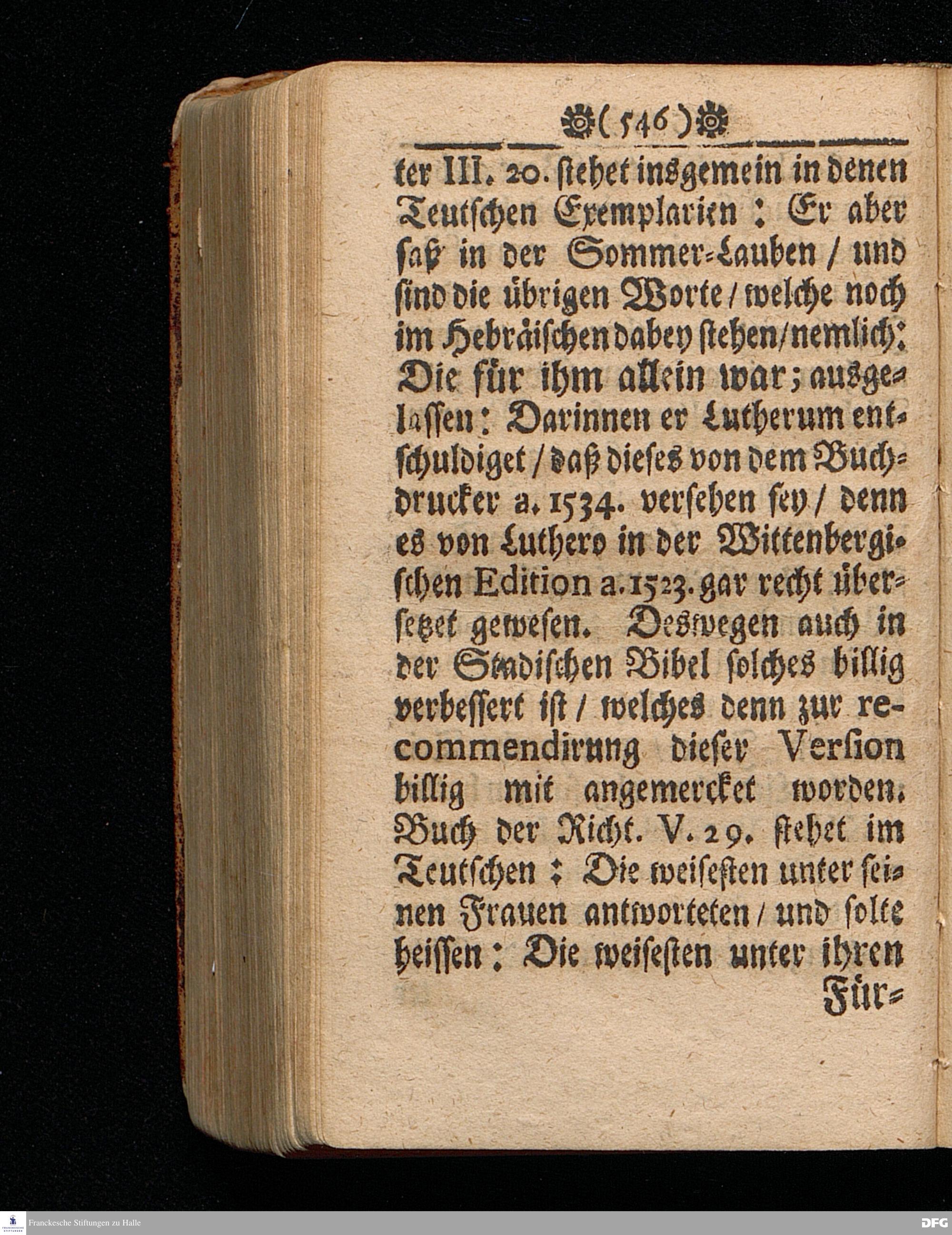M.Aug.Hermann Franckens Gr.& Or.Lingg.Pr.Ord.& Past.Glauch. Fortsetzung Des Warhafftigen Berichts Von denen Monatlichen OBSERVATIONIBUS BIBLICIS, Da aus mehr denn dreyhundert von Theologis und Philologis bemerckten Schrifftstellen erwiesen wird / Daß die teutsche Ubersetzung des sel.Lutheri aus dem Original=Text eine Verbesserung zulasse. JUNIUS 1695. Halle / Gedruckt bey Christoph Salfelden.