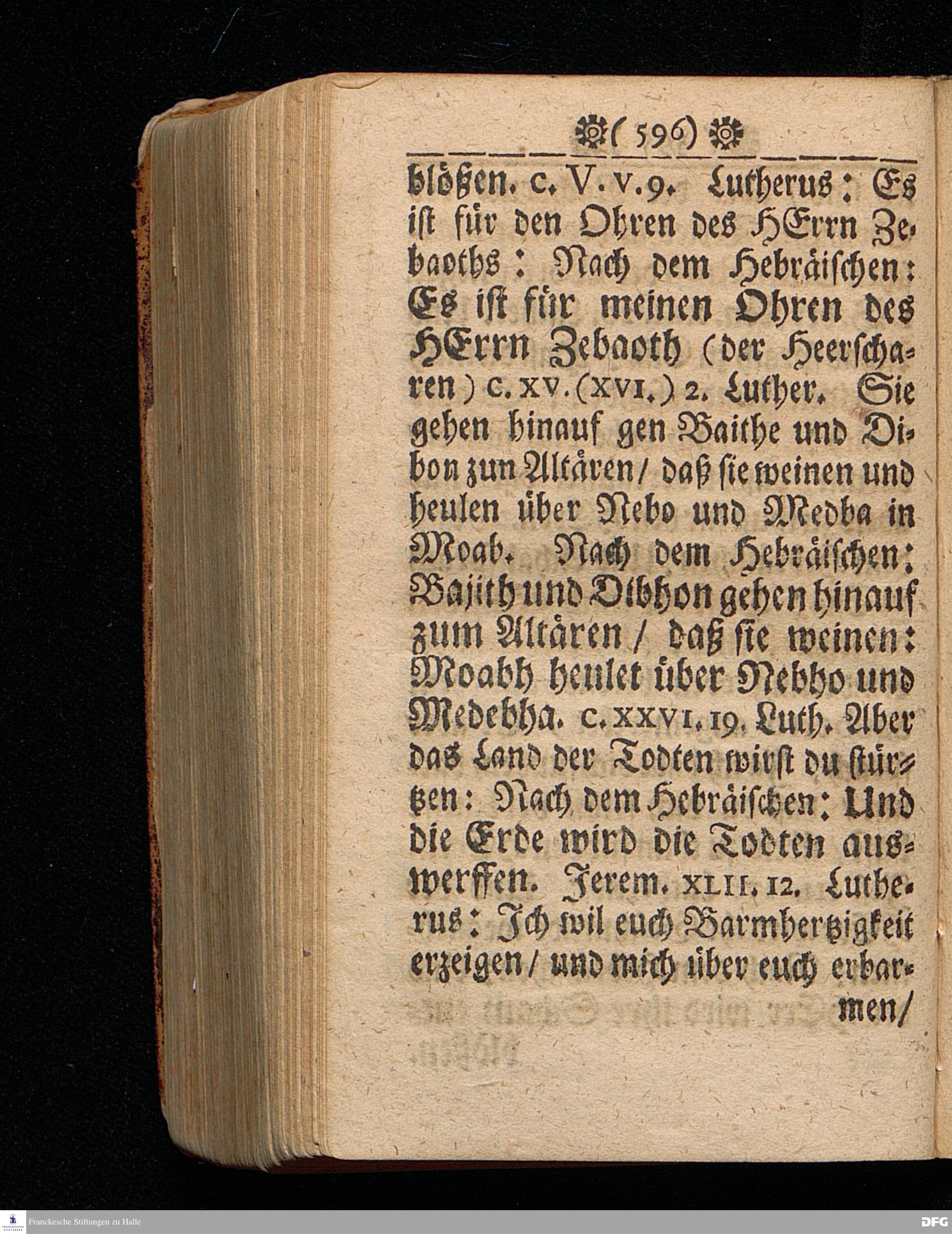 M.Aug.Hermann Franckens Gr.& Or.Lingg.Pr.Ord.& Past.Glauch. Fortsetzung Des Warhafftigen Berichts Von denen Monatlichen OBSERVATIONIBUS BIBLICIS, Da aus mehr denn dreyhundert von Theologis und Philologis bemerckten Schrifftstellen erwiesen wird / Daß die teutsche Ubersetzung des sel.Lutheri aus dem Original=Text eine Verbesserung zulasse. JUNIUS 1695. Halle / Gedruckt bey Christoph Salfelden.