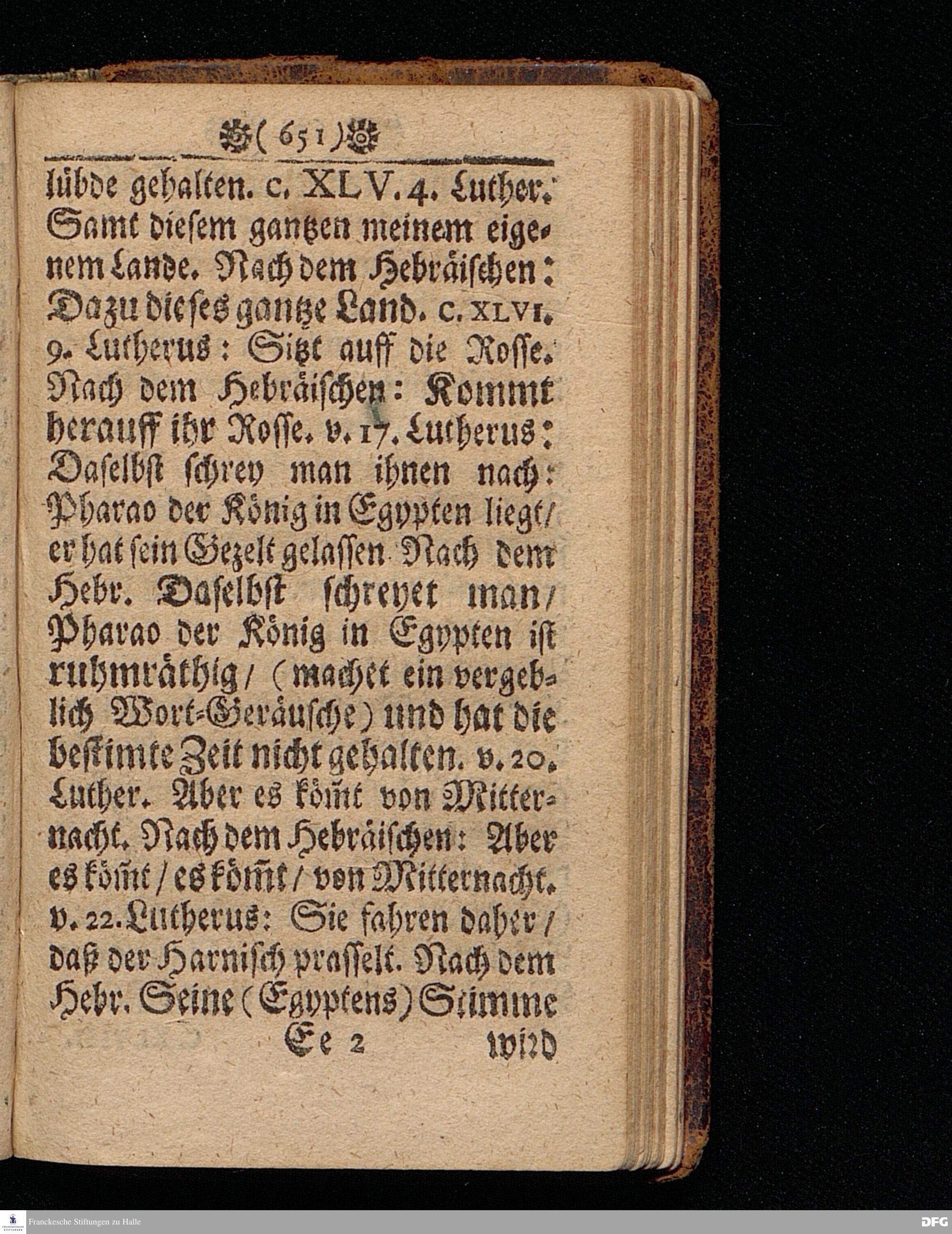 M.Aug.Hermann Franckens Gr.& Or.Lingg.Pr.Ord.& Past.Glauch. Fortsetzung Des Warhafftigen Berichts Von denen Monatlichen OBSERVATIONIBUS BIBLICIS, Da aus mehr denn dreyhundert von Theologis und Philologis bemerckten Schrifftstellen erwiesen wird / Daß die teutsche Ubersetzung des sel.Lutheri aus dem Original=Text eine Verbesserung zulasse. JUNIUS 1695. Halle / Gedruckt bey Christoph Salfelden.