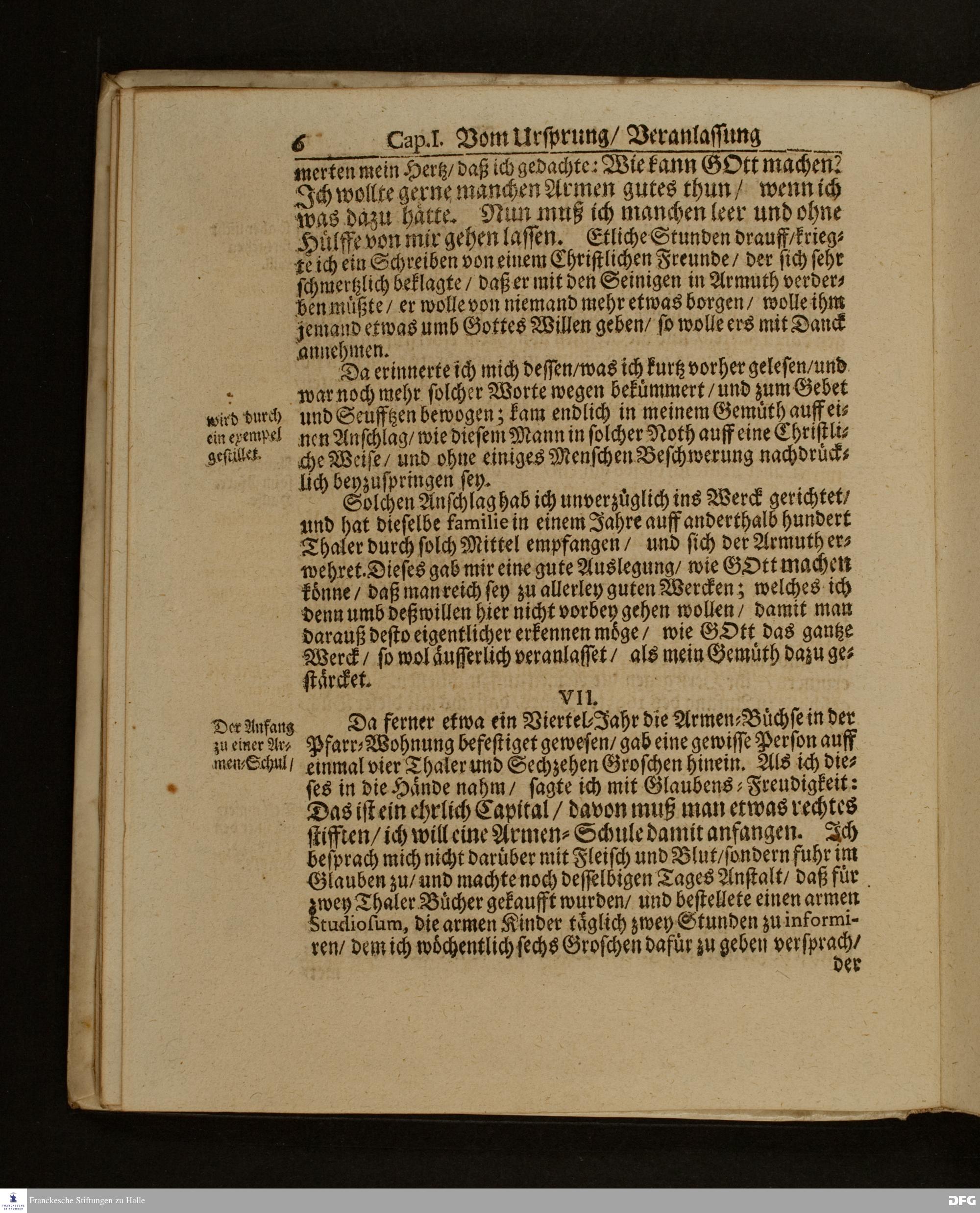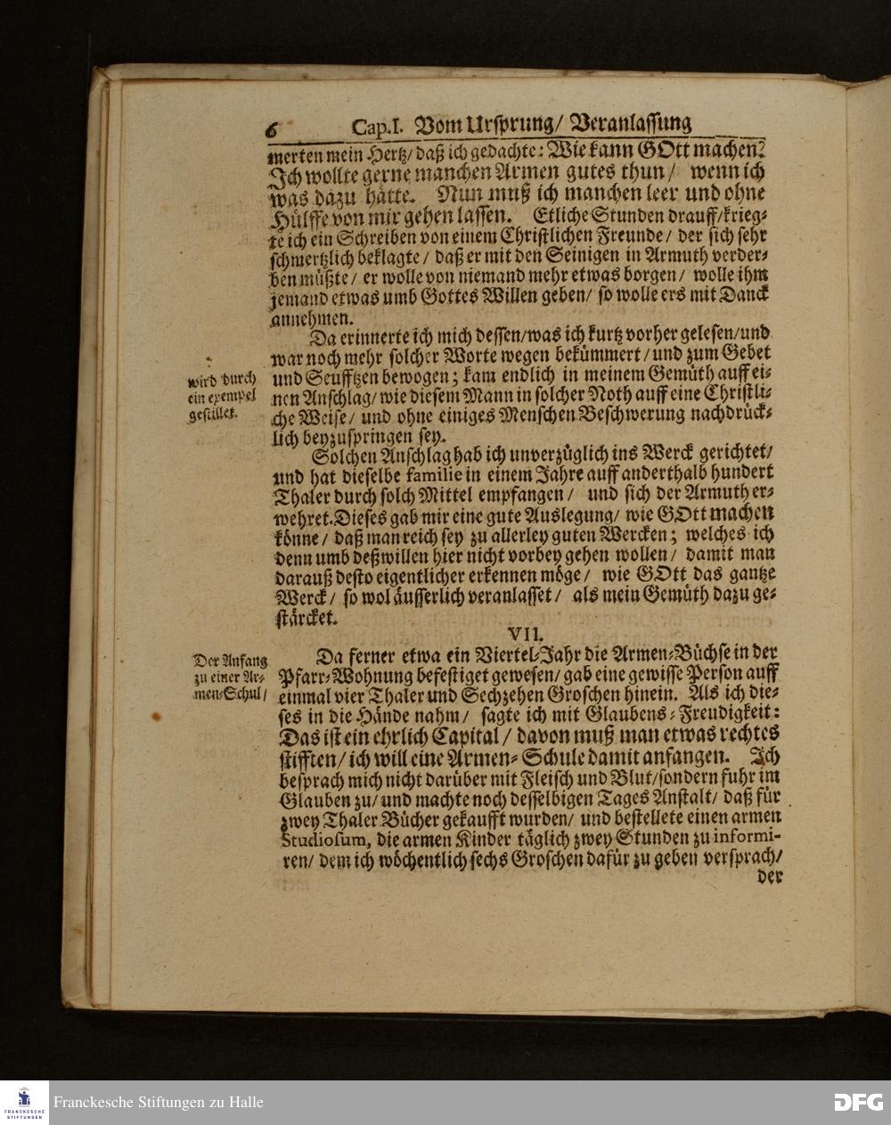 Die Fußstapffen Des noch lebenden und waltenden liebreichen und getreuen GOTTES / Zur Beschämung des Unglaubens / und Stärckung des Glaubens / Durch den Ausführlichen Bericht Vom Wäysen=Hause / Armen=Schulen / und übriger Armen=Verpflegung Zu Glaucha an Halle / Wie selbige fortgesetzet biß Ostern Anno 1701. Entdecket von August Hermann Francken / S.Th.Prof.Ord.und Past. [Spruch.] Mit Königl.Preußischen und Churfl.Brandenb.Privilegio. In Verlegung des Wäysen=Hauses zu Glaucha an Halle / 1701.