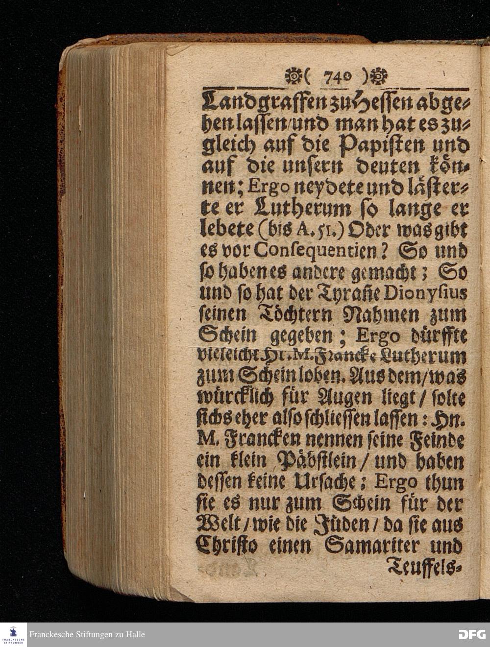 M.Aug.Hermann Franckens Gr.& Or.Lingg.Pr.Ord.& Past.Glauch. Fortsetzung Des warhaftigen Berichts Von denen Monatlichen OBSERVATIONIBUS BIBLICIS, Da noch ferner aus sehr vielen Schrifftstellen erwiesen wird Daß die teutsche Ubersetzung des sel.Lutheri aus dem Original=Text eine Verbesserung zulasse. Nebst dem Beweiß eines Anonymi daß die Hamburgische und Wittenbergische Interlocution Einrede und Klage gegen seine im Majo angefangene Schutz=Rede nicht richtig sey. JULIUS 1695. Halle / Gedruckt bey Christoph Salfelden.