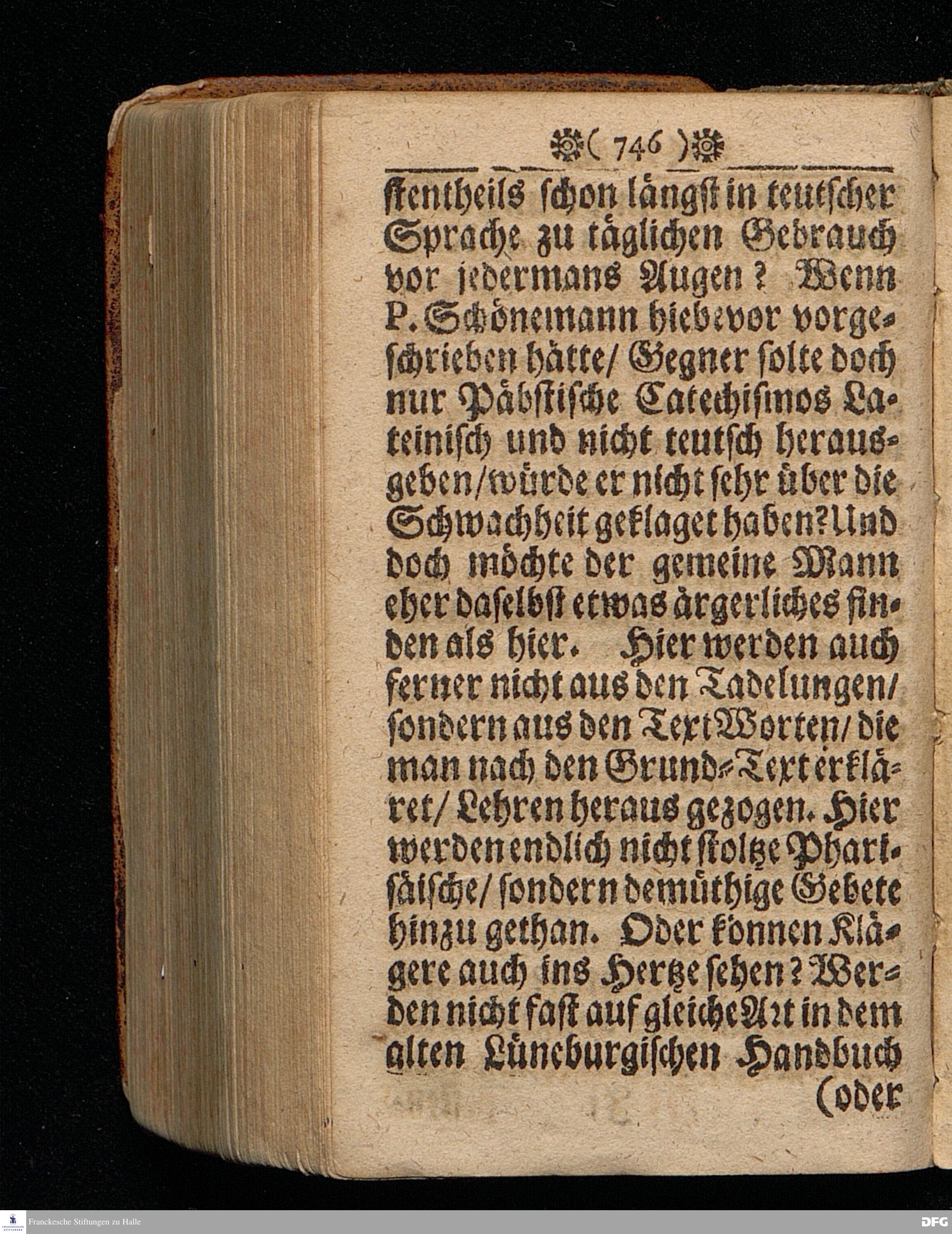M.Aug.Hermann Franckens Gr.& Or.Lingg.Pr.Ord.& Past.Glauch. Fortsetzung Des warhaftigen Berichts Von denen Monatlichen OBSERVATIONIBUS BIBLICIS, Da noch ferner aus sehr vielen Schrifftstellen erwiesen wird Daß die teutsche Ubersetzung des sel.Lutheri aus dem Original=Text eine Verbesserung zulasse. Nebst dem Beweiß eines Anonymi daß die Hamburgische und Wittenbergische Interlocution Einrede und Klage gegen seine im Majo angefangene Schutz=Rede nicht richtig sey. JULIUS 1695. Halle / Gedruckt bey Christoph Salfelden.
