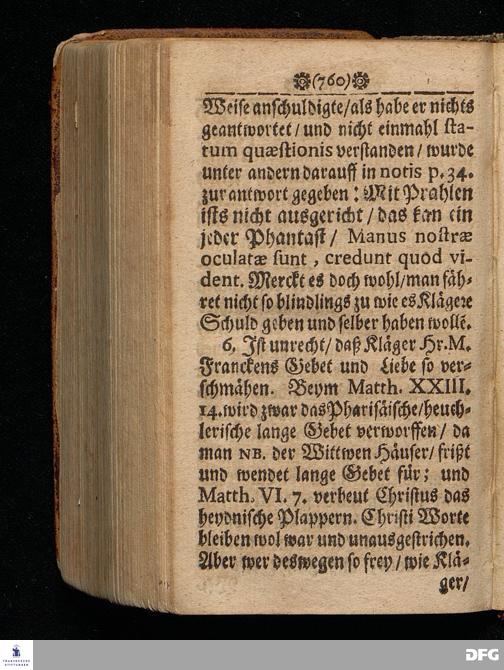 M.Aug.Hermann Franckens Gr.& Or.Lingg.Pr.Ord.& Past.Glauch. Fortsetzung Des warhaftigen Berichts Von denen Monatlichen OBSERVATIONIBUS BIBLICIS, Da noch ferner aus sehr vielen Schrifftstellen erwiesen wird Daß die teutsche Ubersetzung des sel.Lutheri aus dem Original=Text eine Verbesserung zulasse. Nebst dem Beweiß eines Anonymi daß die Hamburgische und Wittenbergische Interlocution Einrede und Klage gegen seine im Majo angefangene Schutz=Rede nicht richtig sey. JULIUS 1695. Halle / Gedruckt bey Christoph Salfelden.