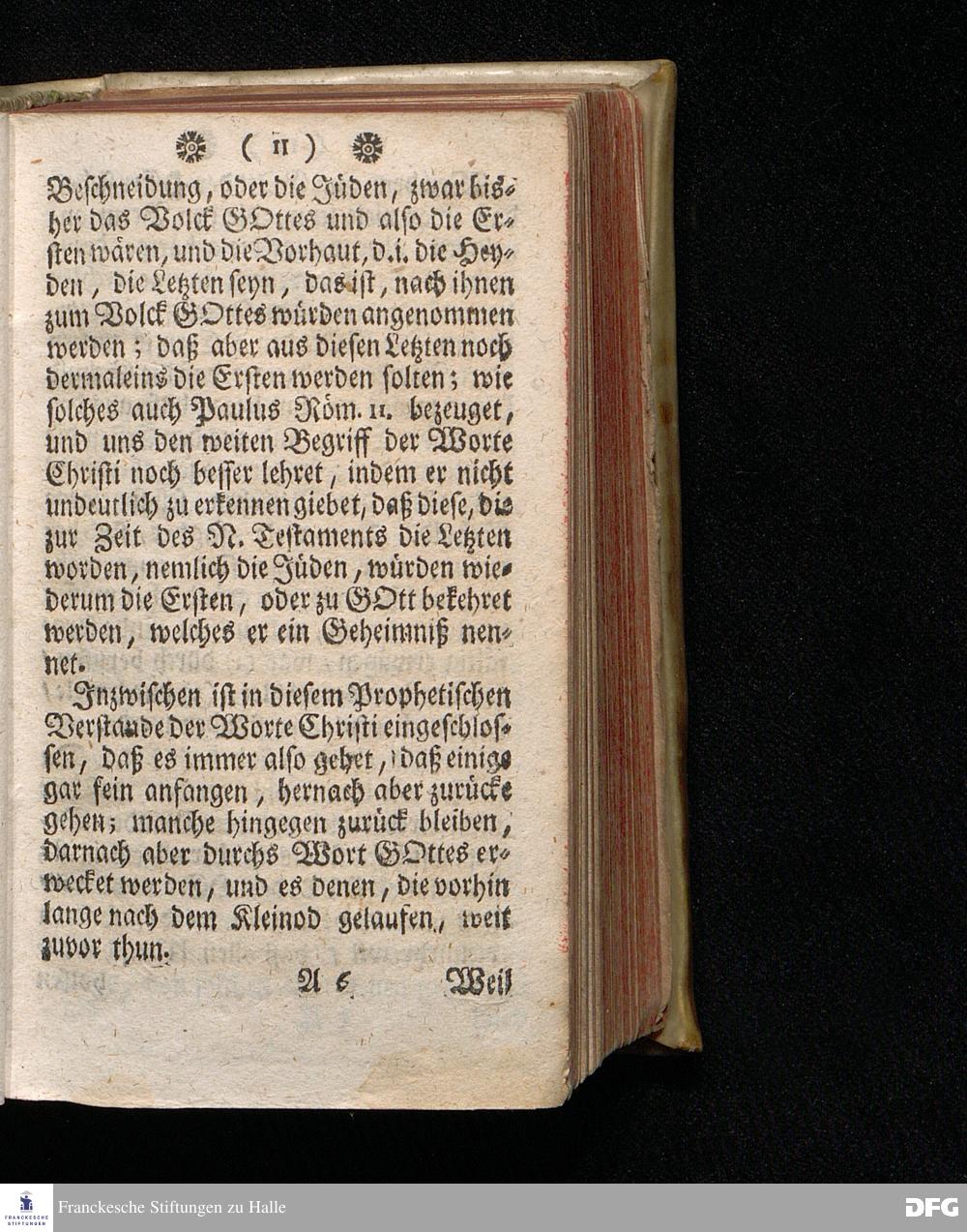 Erklärung des Spruchs Matth. 20 / 16. [Viele sind berufen / aber wenig sind auserwählet.] Auf dem Wäysen=Hause zu Glaucha An Halle Den 8.Jul.1711. ertheilet Von August Hermann Francken / S.Th.P.Ord.& Past.Glauch. Dritte Auflage. HALLE, In Verlegung des Wäysen=Hauses. MDCCXXIII.