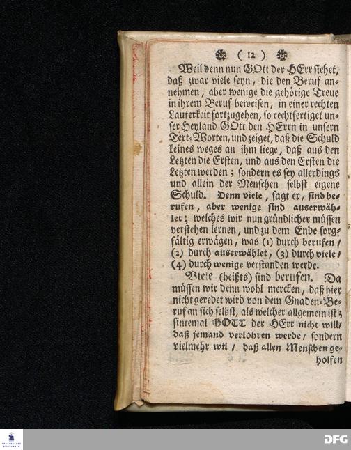 Erklärung des Spruchs Matth. 20 / 16. [Viele sind berufen / aber wenig sind auserwählet.] Auf dem Wäysen=Hause zu Glaucha An Halle Den 8.Jul.1711. ertheilet Von August Hermann Francken / S.Th.P.Ord.& Past.Glauch. Dritte Auflage. HALLE, In Verlegung des Wäysen=Hauses. MDCCXXIII.