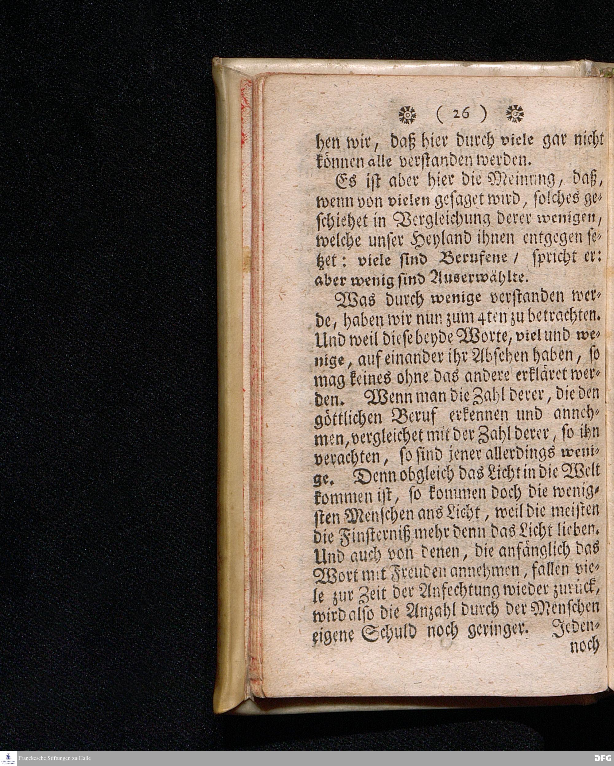 Erklärung des Spruchs Matth. 20 / 16. [Viele sind berufen / aber wenig sind auserwählet.] Auf dem Wäysen=Hause zu Glaucha An Halle Den 8.Jul.1711. ertheilet Von August Hermann Francken / S.Th.P.Ord.& Past.Glauch. Dritte Auflage. HALLE, In Verlegung des Wäysen=Hauses. MDCCXXIII.
