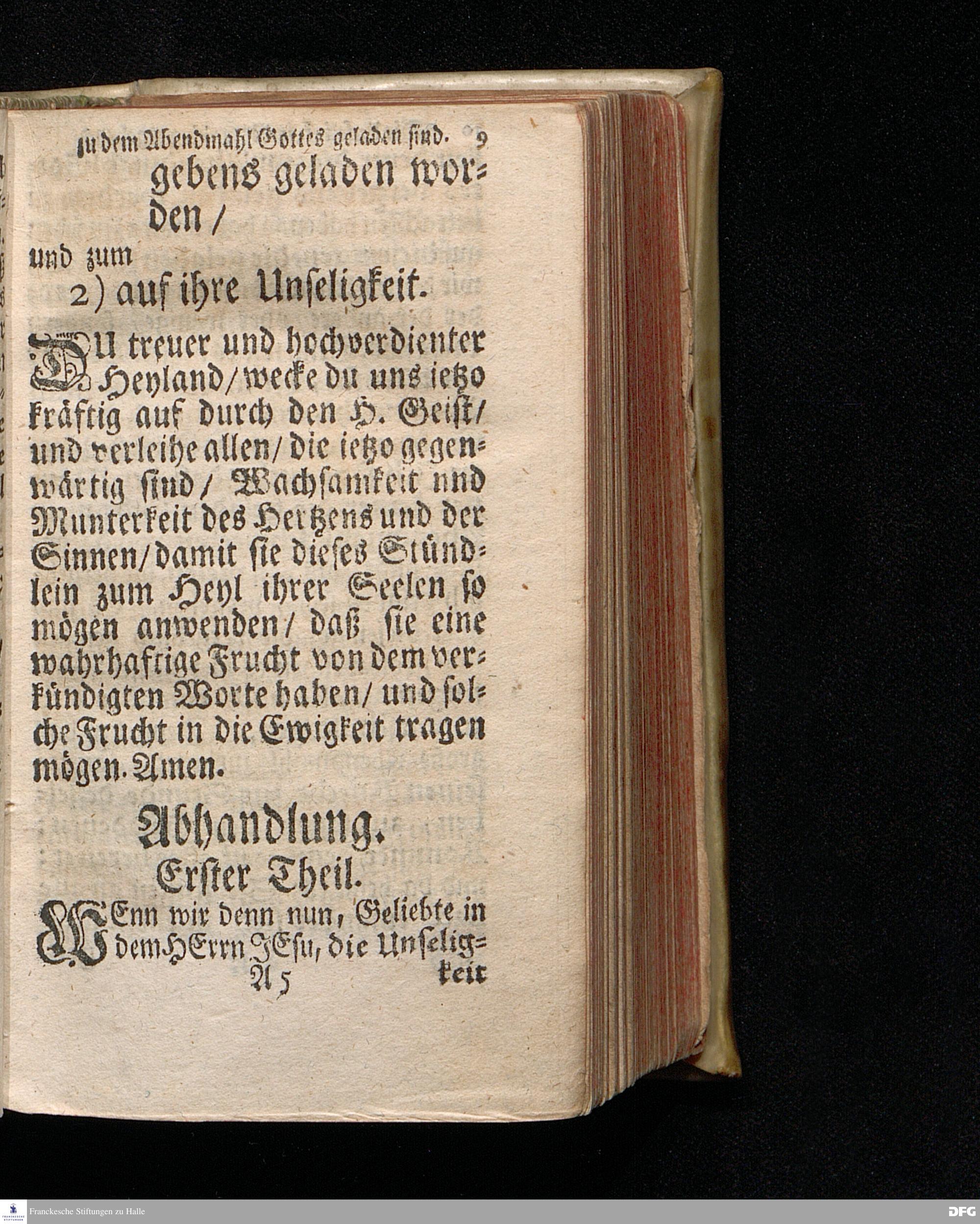 Die Unseligkeit Derer / Die vergebens zu dem Abendmahl GOttes geladen sind / Aus dem Evangelischen Text Luc.XIV, 16--24. Am II.Sonntag nach Trinit. 1715. In der S.Ulrichs=Kirche zu Halle vorgestellet von August Hermann Francken / S.Th.Prof.& Past.zu S.Ulrich und des Gymnasii Scholarcha. Der Jugend in denen zum Wäysenhause gehörigen Schulen nach gehaltenem Examine ausgetheilet d.8.Jul.1719. Andere Auflage. HALLE / In Verlegung des Wäysenhauses. 1729.