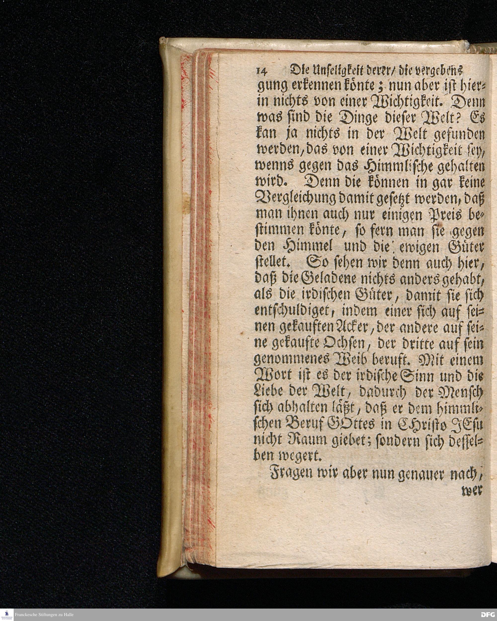 Die Unseligkeit Derer / Die vergebens zu dem Abendmahl GOttes geladen sind / Aus dem Evangelischen Text Luc.XIV, 16--24. Am II.Sonntag nach Trinit. 1715. In der S.Ulrichs=Kirche zu Halle vorgestellet von August Hermann Francken / S.Th.Prof.& Past.zu S.Ulrich und des Gymnasii Scholarcha. Der Jugend in denen zum Wäysenhause gehörigen Schulen nach gehaltenem Examine ausgetheilet d.8.Jul.1719. Andere Auflage. HALLE / In Verlegung des Wäysenhauses. 1729.
