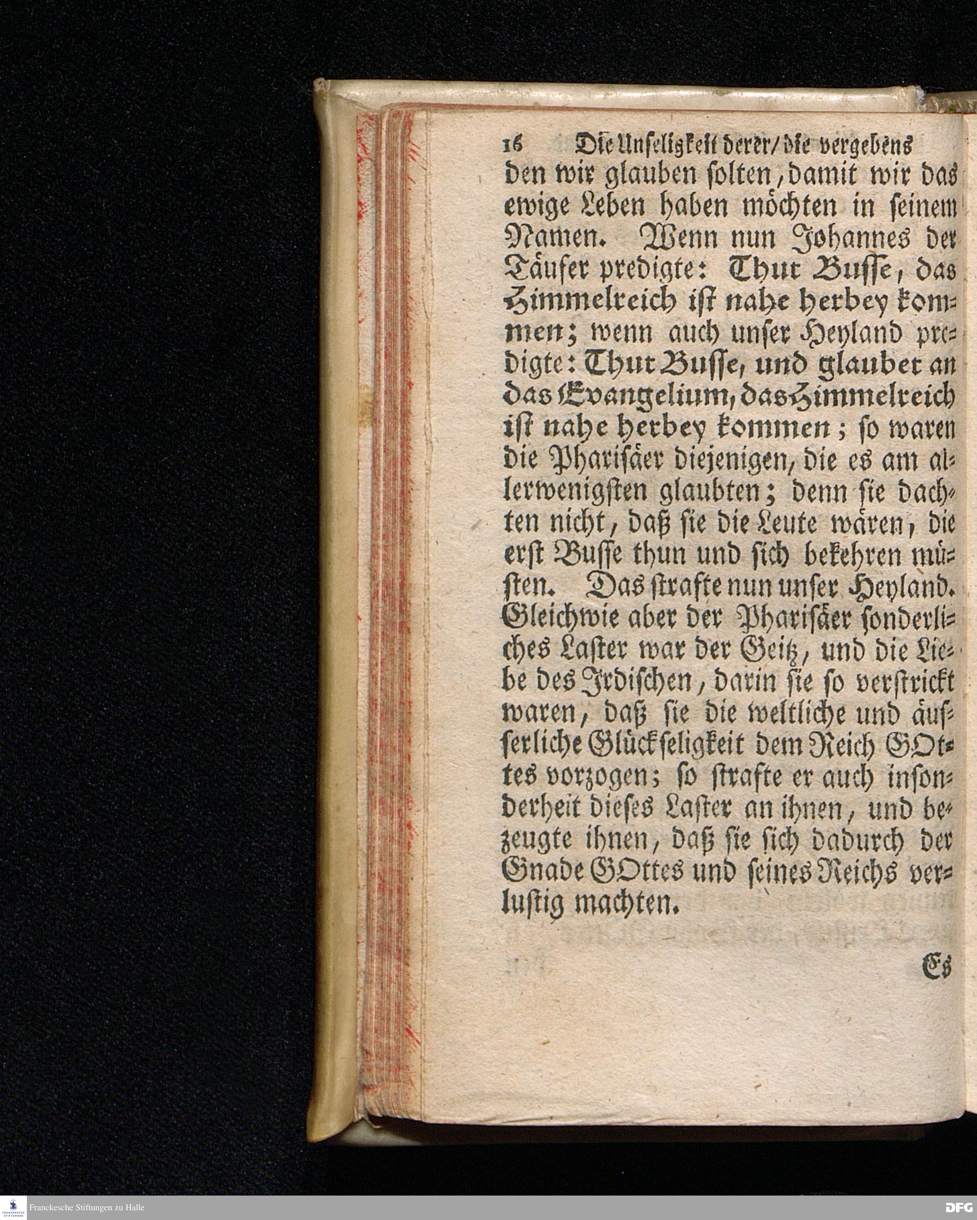 Die Unseligkeit Derer / Die vergebens zu dem Abendmahl GOttes geladen sind / Aus dem Evangelischen Text Luc.XIV, 16--24. Am II.Sonntag nach Trinit. 1715. In der S.Ulrichs=Kirche zu Halle vorgestellet von August Hermann Francken / S.Th.Prof.& Past.zu S.Ulrich und des Gymnasii Scholarcha. Der Jugend in denen zum Wäysenhause gehörigen Schulen nach gehaltenem Examine ausgetheilet d.8.Jul.1719. Andere Auflage. HALLE / In Verlegung des Wäysenhauses. 1729.