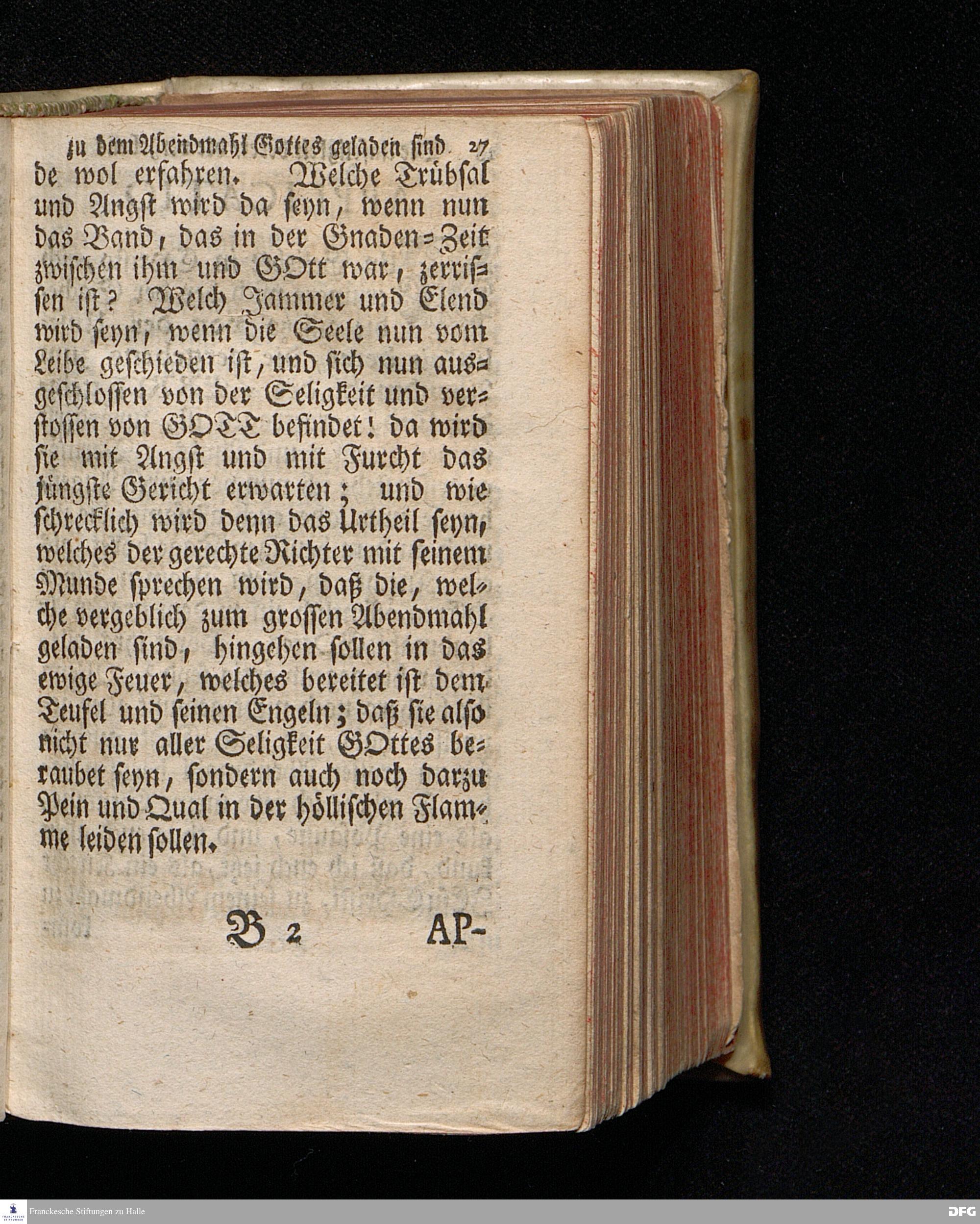 Die Unseligkeit Derer / Die vergebens zu dem Abendmahl GOttes geladen sind / Aus dem Evangelischen Text Luc.XIV, 16--24. Am II.Sonntag nach Trinit. 1715. In der S.Ulrichs=Kirche zu Halle vorgestellet von August Hermann Francken / S.Th.Prof.& Past.zu S.Ulrich und des Gymnasii Scholarcha. Der Jugend in denen zum Wäysenhause gehörigen Schulen nach gehaltenem Examine ausgetheilet d.8.Jul.1719. Andere Auflage. HALLE / In Verlegung des Wäysenhauses. 1729.