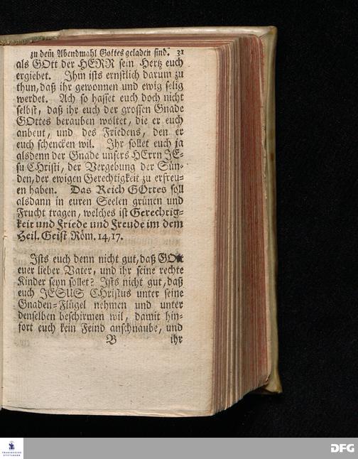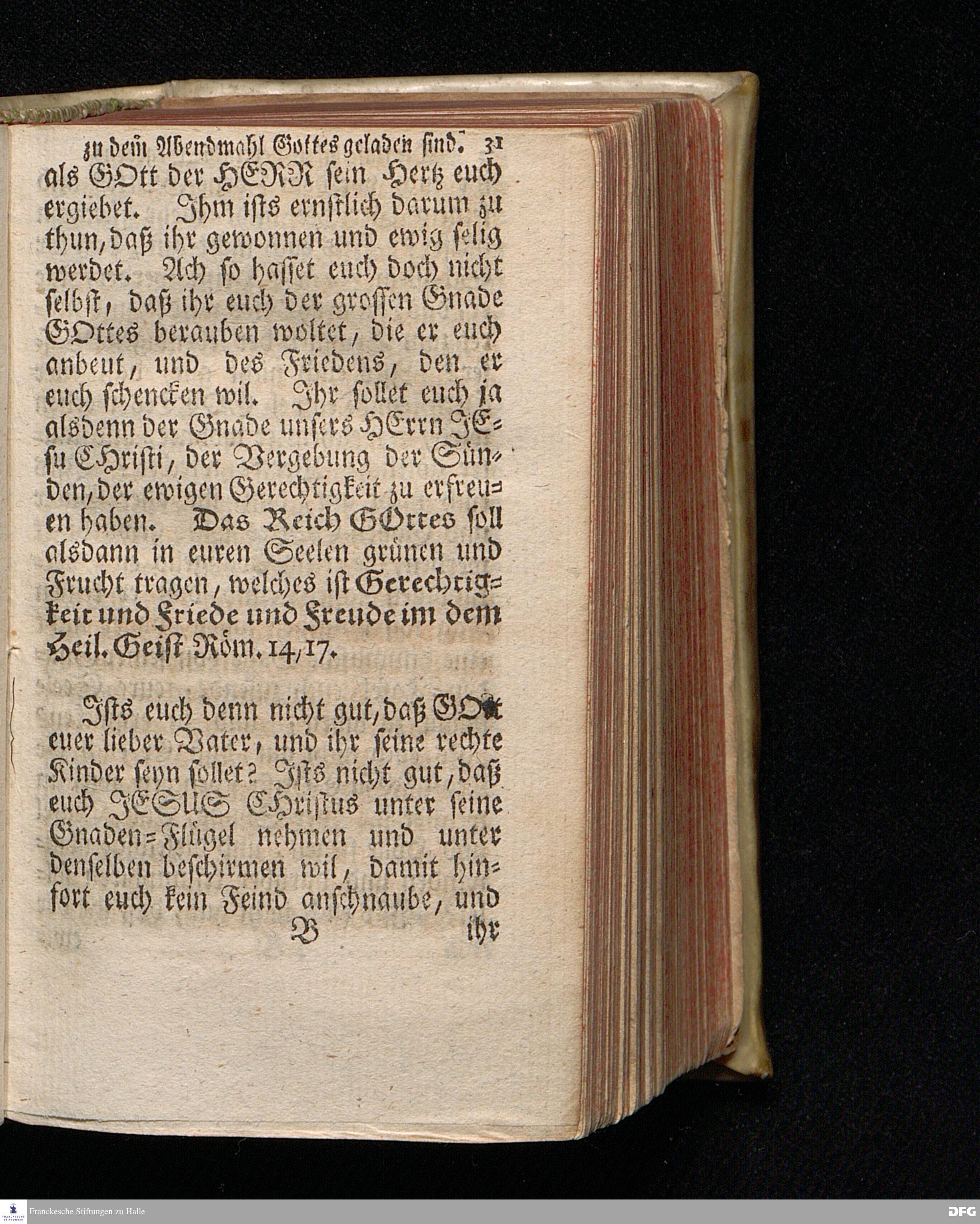 Die Unseligkeit Derer / Die vergebens zu dem Abendmahl GOttes geladen sind / Aus dem Evangelischen Text Luc.XIV, 16--24. Am II.Sonntag nach Trinit. 1715. In der S.Ulrichs=Kirche zu Halle vorgestellet von August Hermann Francken / S.Th.Prof.& Past.zu S.Ulrich und des Gymnasii Scholarcha. Der Jugend in denen zum Wäysenhause gehörigen Schulen nach gehaltenem Examine ausgetheilet d.8.Jul.1719. Andere Auflage. HALLE / In Verlegung des Wäysenhauses. 1729.