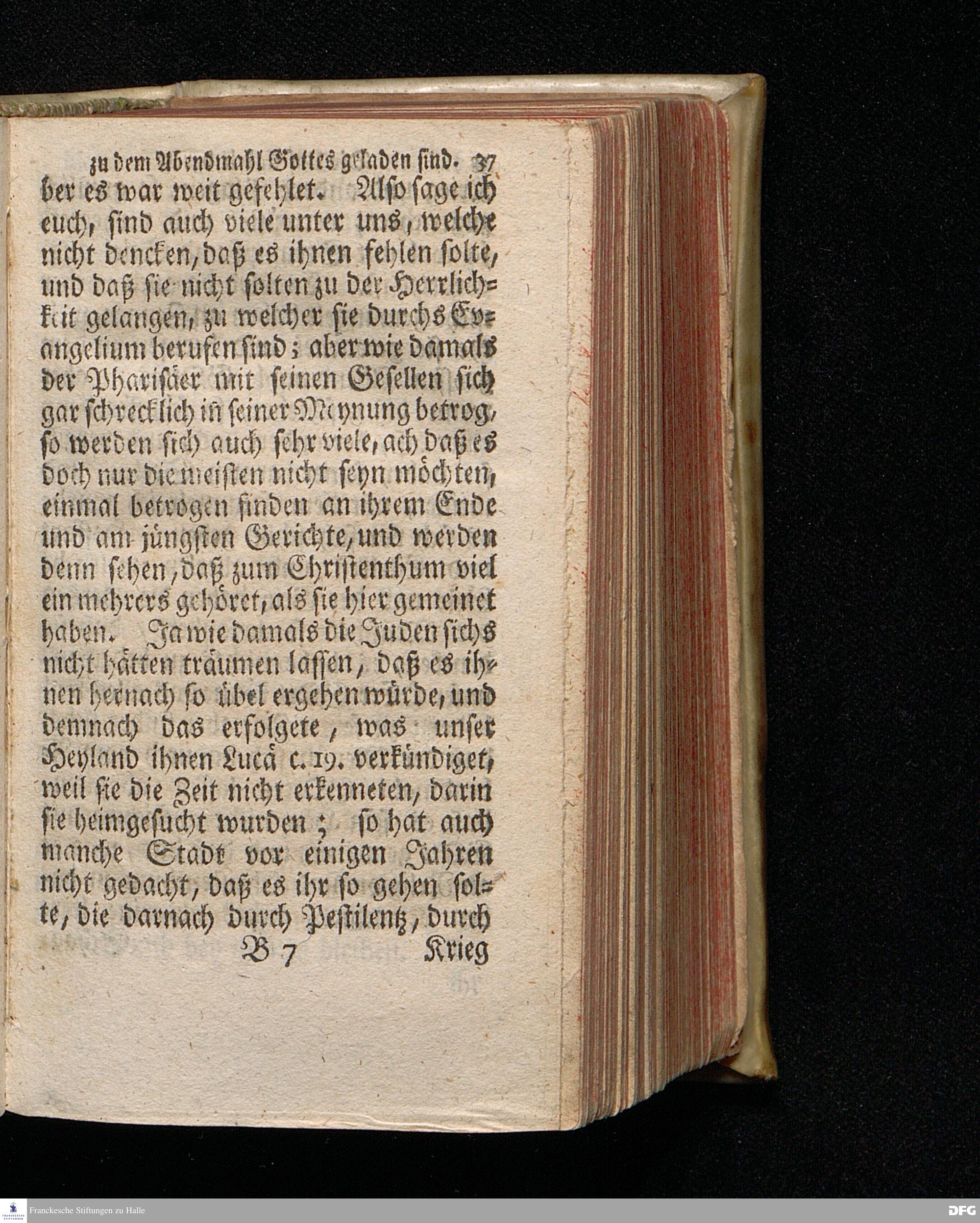 Die Unseligkeit Derer / Die vergebens zu dem Abendmahl GOttes geladen sind / Aus dem Evangelischen Text Luc.XIV, 16--24. Am II.Sonntag nach Trinit. 1715. In der S.Ulrichs=Kirche zu Halle vorgestellet von August Hermann Francken / S.Th.Prof.& Past.zu S.Ulrich und des Gymnasii Scholarcha. Der Jugend in denen zum Wäysenhause gehörigen Schulen nach gehaltenem Examine ausgetheilet d.8.Jul.1719. Andere Auflage. HALLE / In Verlegung des Wäysenhauses. 1729.