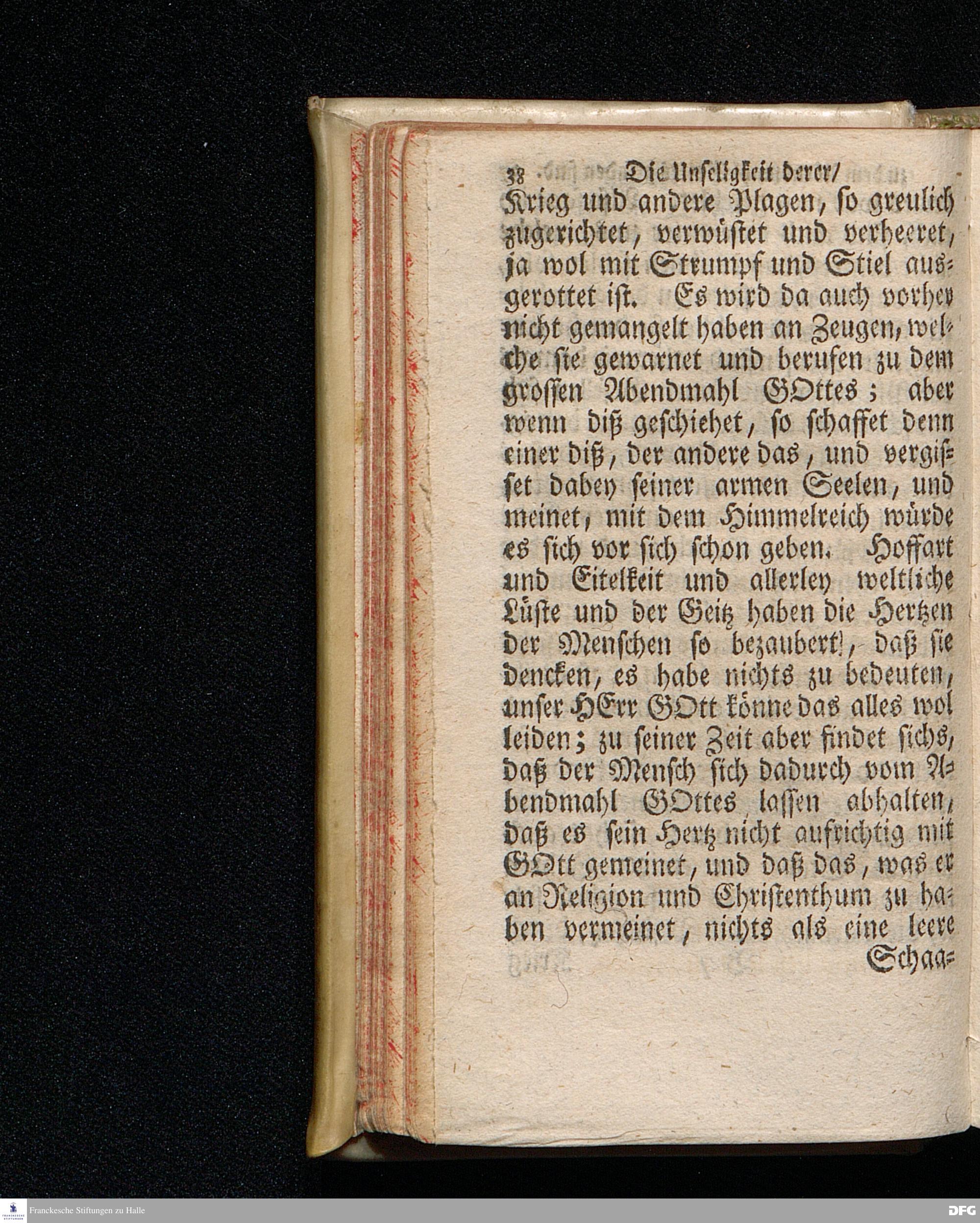 Die Unseligkeit Derer / Die vergebens zu dem Abendmahl GOttes geladen sind / Aus dem Evangelischen Text Luc.XIV, 16--24. Am II.Sonntag nach Trinit. 1715. In der S.Ulrichs=Kirche zu Halle vorgestellet von August Hermann Francken / S.Th.Prof.& Past.zu S.Ulrich und des Gymnasii Scholarcha. Der Jugend in denen zum Wäysenhause gehörigen Schulen nach gehaltenem Examine ausgetheilet d.8.Jul.1719. Andere Auflage. HALLE / In Verlegung des Wäysenhauses. 1729.