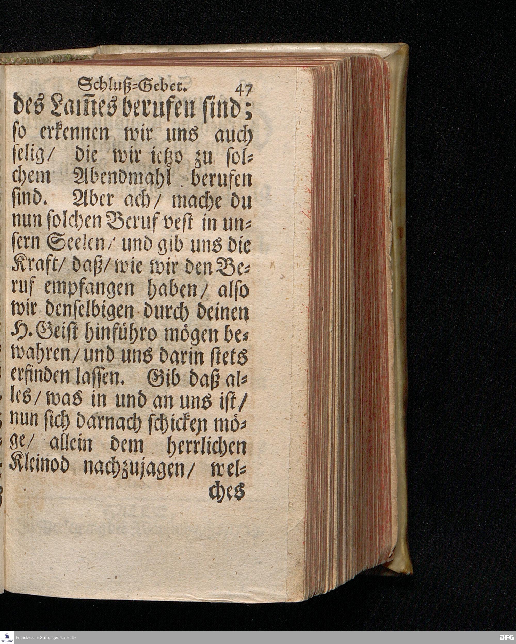 Die Unseligkeit Derer / Die vergebens zu dem Abendmahl GOttes geladen sind / Aus dem Evangelischen Text Luc.XIV, 16--24. Am II.Sonntag nach Trinit. 1715. In der S.Ulrichs=Kirche zu Halle vorgestellet von August Hermann Francken / S.Th.Prof.& Past.zu S.Ulrich und des Gymnasii Scholarcha. Der Jugend in denen zum Wäysenhause gehörigen Schulen nach gehaltenem Examine ausgetheilet d.8.Jul.1719. Andere Auflage. HALLE / In Verlegung des Wäysenhauses. 1729.