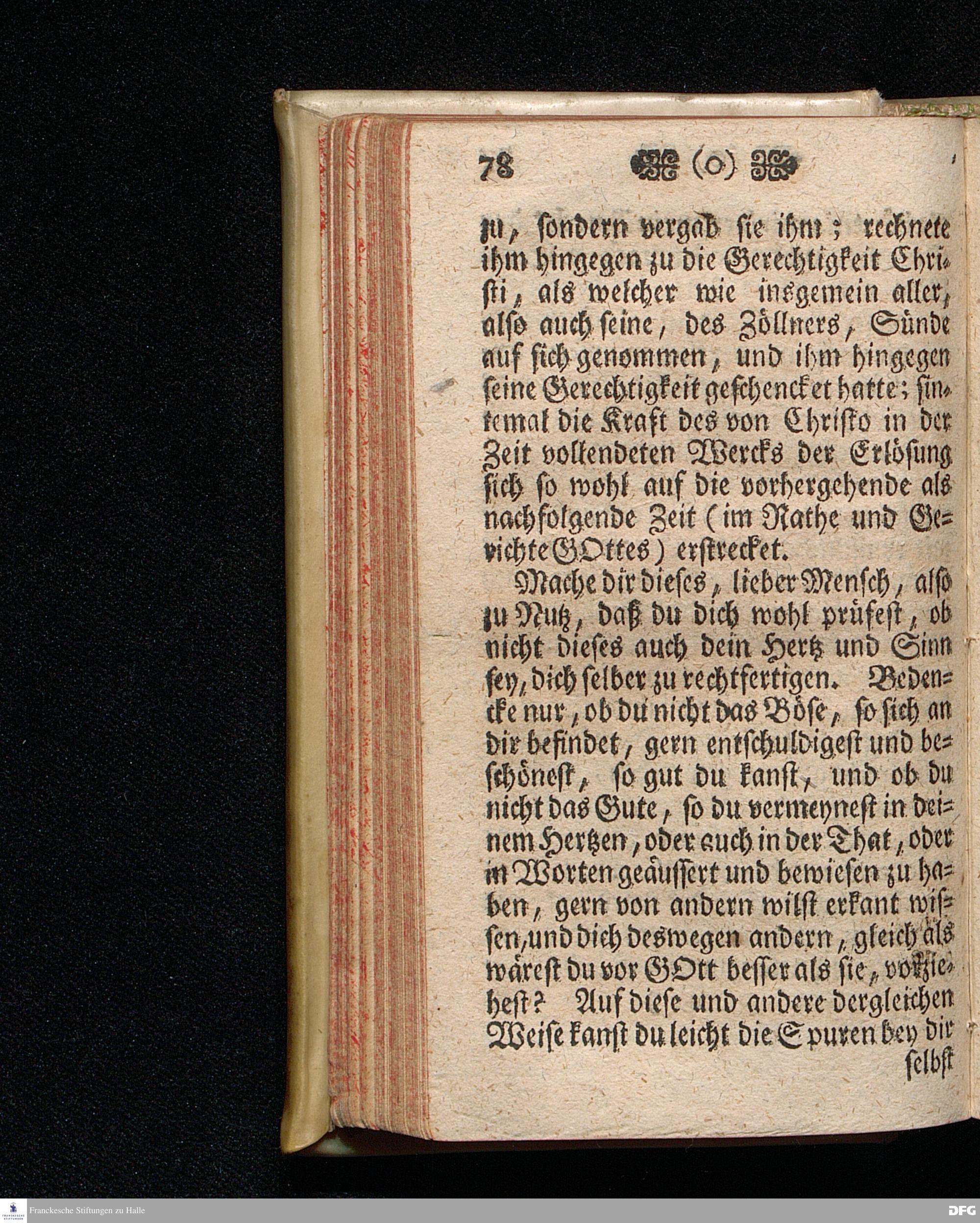 Der Unterscheid der Selbst=Rechtfertigung Und der Wahren Rechtfertigung, In einer Predigt / Uber Den Evangelischen Text, Luc.XIIX, 9-14. Am XI.Sonntag nach Trinitatis Anno MDCCXIII. In der St.Georgen=Kirche zu Glaucha an Halle, Vorgestellet Von August Hermann Francken / S.Theol.Prof.Ord.& Past.Glauch. HALLE, In Verlegung des Wäysenhauses, 1729.