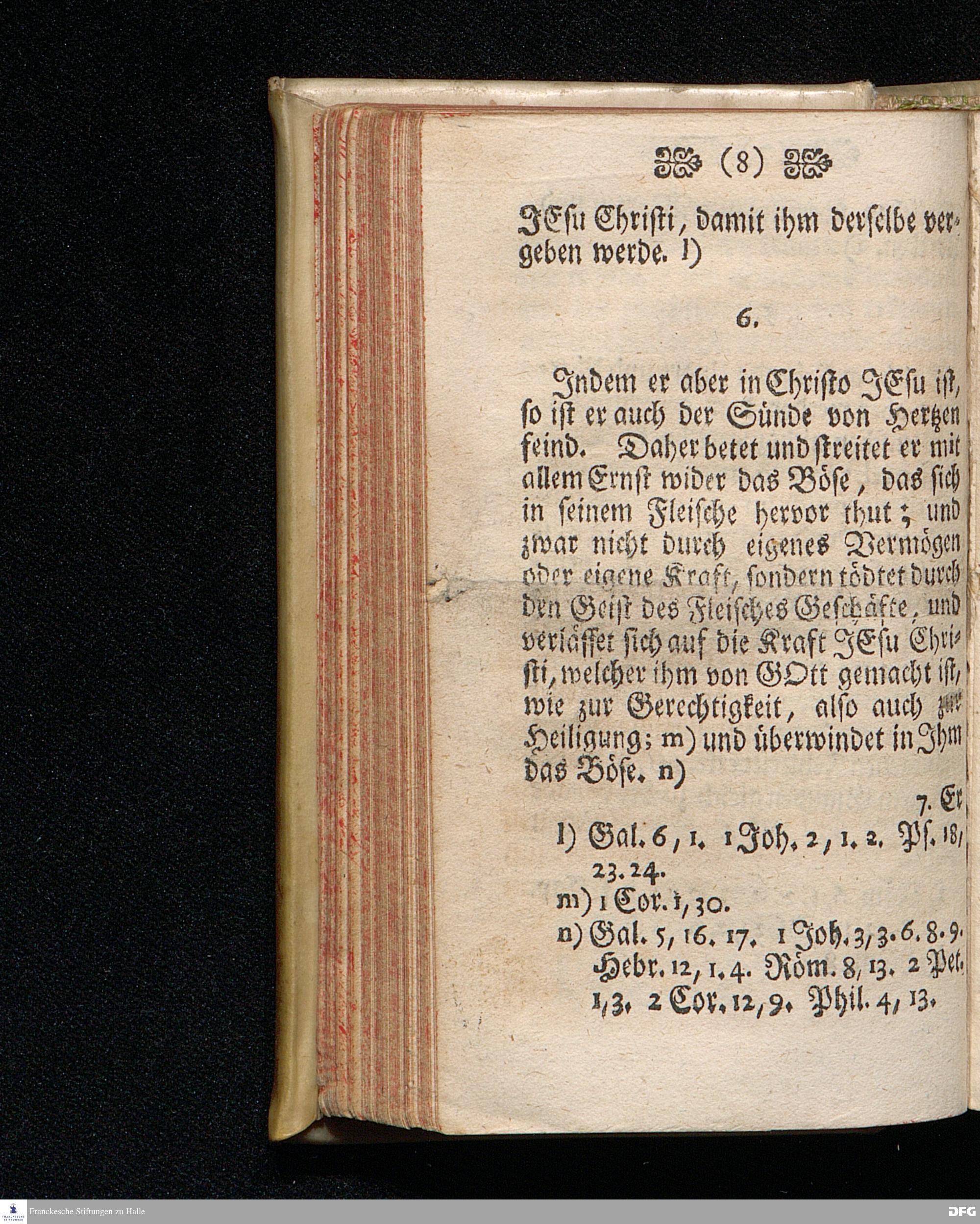 Kurtze Lehr=Sätze von der Vollkommenheit / nach dem Grunde der Heiligen Schrift Anno 1691. abgefasset, und ietzo zum fünften mal zum Druck befördert von August Hermann Francken / S.Theol.Prof.Ordin.Past.Vlr.& Scholarcha. HALLE, In Verlegung des Wäysen=Hauses. MDCCXXIII.
