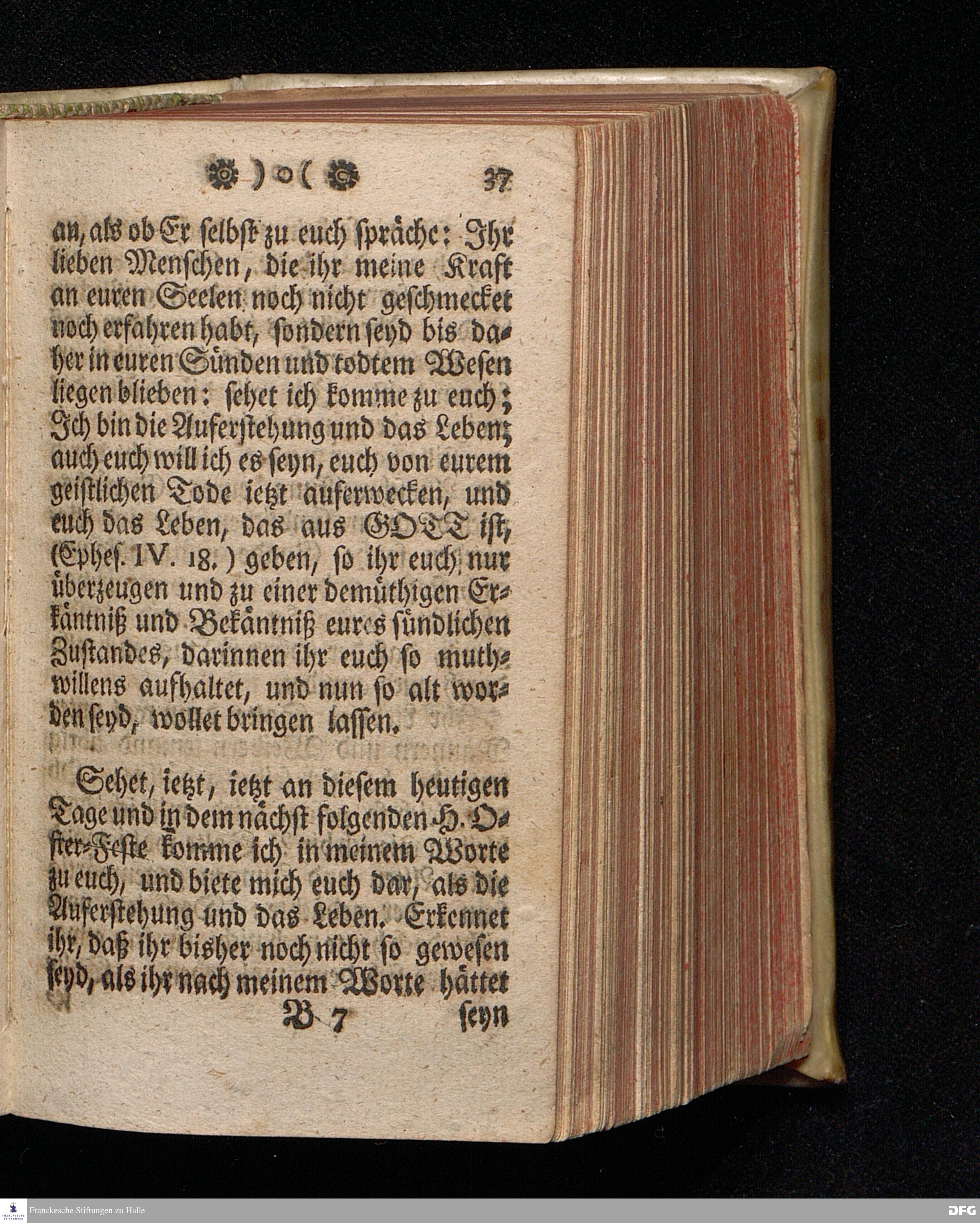 Vorbereitung auf das Heilige Oster=Fest / den 29.Mart. 1720. Nach Anleitung der Worte Joh.XI, 25.26. [Bibelzitat.] In Volckreicher Versammlung auf dem Wäysenhause Zu Glaucha an Halle gegeben von August Hermann Francken / S.Th.Pr.Past.Vlr.& Schol. Andere Auflage. Halle, zu finden im Wäysenhause. 1730.