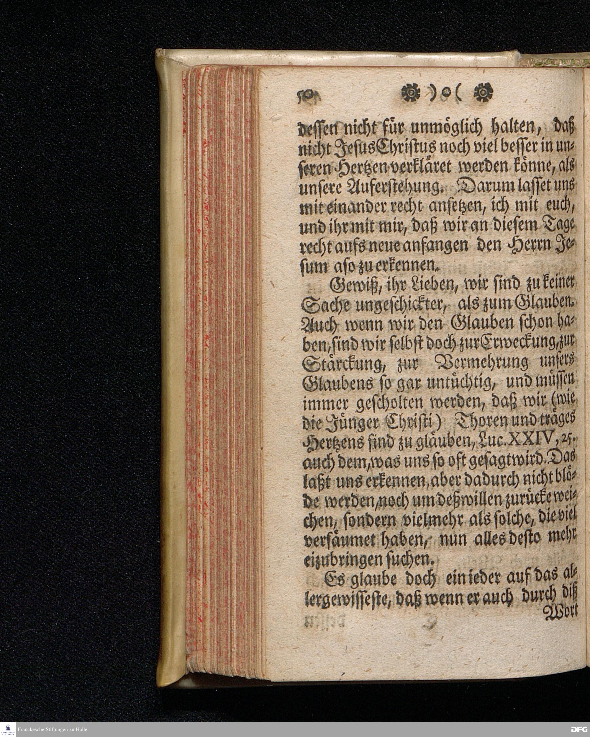 Vorbereitung auf das Heilige Oster=Fest / den 29.Mart. 1720. Nach Anleitung der Worte Joh.XI, 25.26. [Bibelzitat.] In Volckreicher Versammlung auf dem Wäysenhause Zu Glaucha an Halle gegeben von August Hermann Francken / S.Th.Pr.Past.Vlr.& Schol. Andere Auflage. Halle, zu finden im Wäysenhause. 1730.