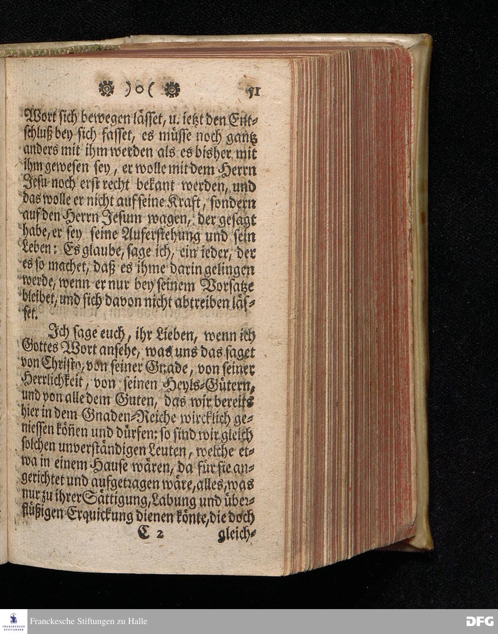 Vorbereitung auf das Heilige Oster=Fest / den 29.Mart. 1720. Nach Anleitung der Worte Joh.XI, 25.26. [Bibelzitat.] In Volckreicher Versammlung auf dem Wäysenhause Zu Glaucha an Halle gegeben von August Hermann Francken / S.Th.Pr.Past.Vlr.& Schol. Andere Auflage. Halle, zu finden im Wäysenhause. 1730.