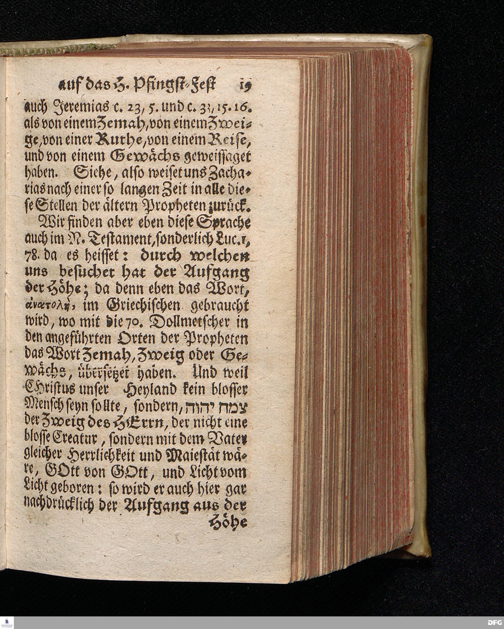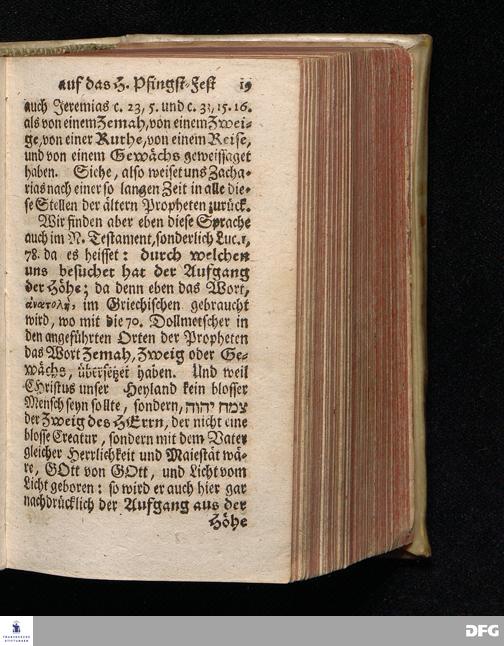 Vorbereitung auf das Heilige Pfingst=Fest / über Jes.IV, 2--6. den 18ten Mai. MDCCXX. In volckreicher Versammlung auf dem Wäysenhause zu Glaucha an Halle ertheilet von August Hermann Francken / S.Theol.Prof.Past.Ulr.& Schol. HALLE, In Verlegung des Wäysenhauses, MDCCXXII.