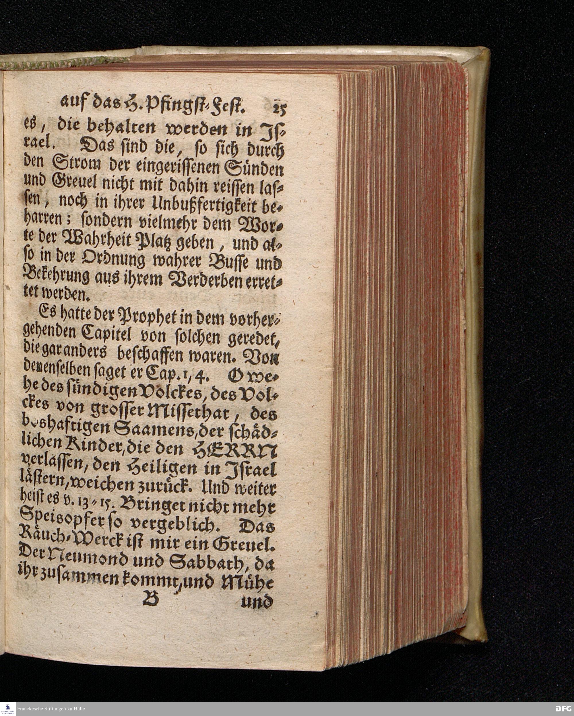 Vorbereitung auf das Heilige Pfingst=Fest / über Jes.IV, 2--6. den 18ten Mai. MDCCXX. In volckreicher Versammlung auf dem Wäysenhause zu Glaucha an Halle ertheilet von August Hermann Francken / S.Theol.Prof.Past.Ulr.& Schol. HALLE, In Verlegung des Wäysenhauses, MDCCXXII.