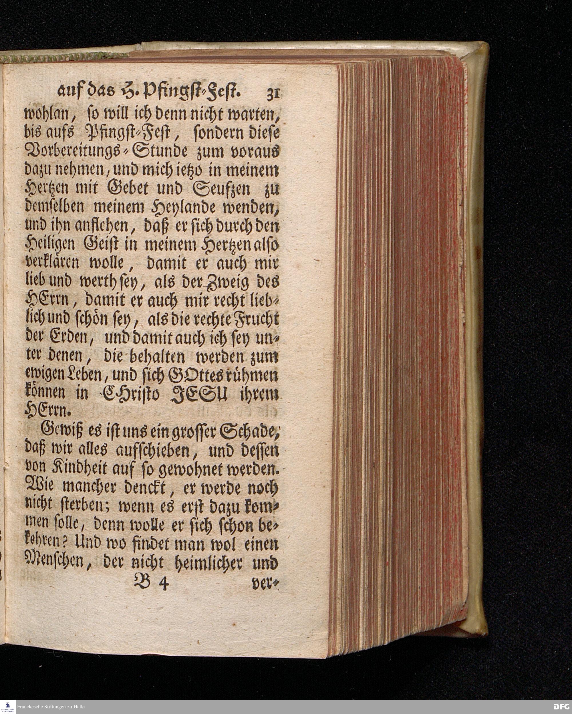 Vorbereitung auf das Heilige Pfingst=Fest / über Jes.IV, 2--6. den 18ten Mai. MDCCXX. In volckreicher Versammlung auf dem Wäysenhause zu Glaucha an Halle ertheilet von August Hermann Francken / S.Theol.Prof.Past.Ulr.& Schol. HALLE, In Verlegung des Wäysenhauses, MDCCXXII.