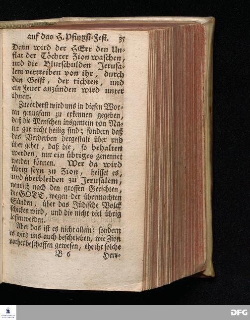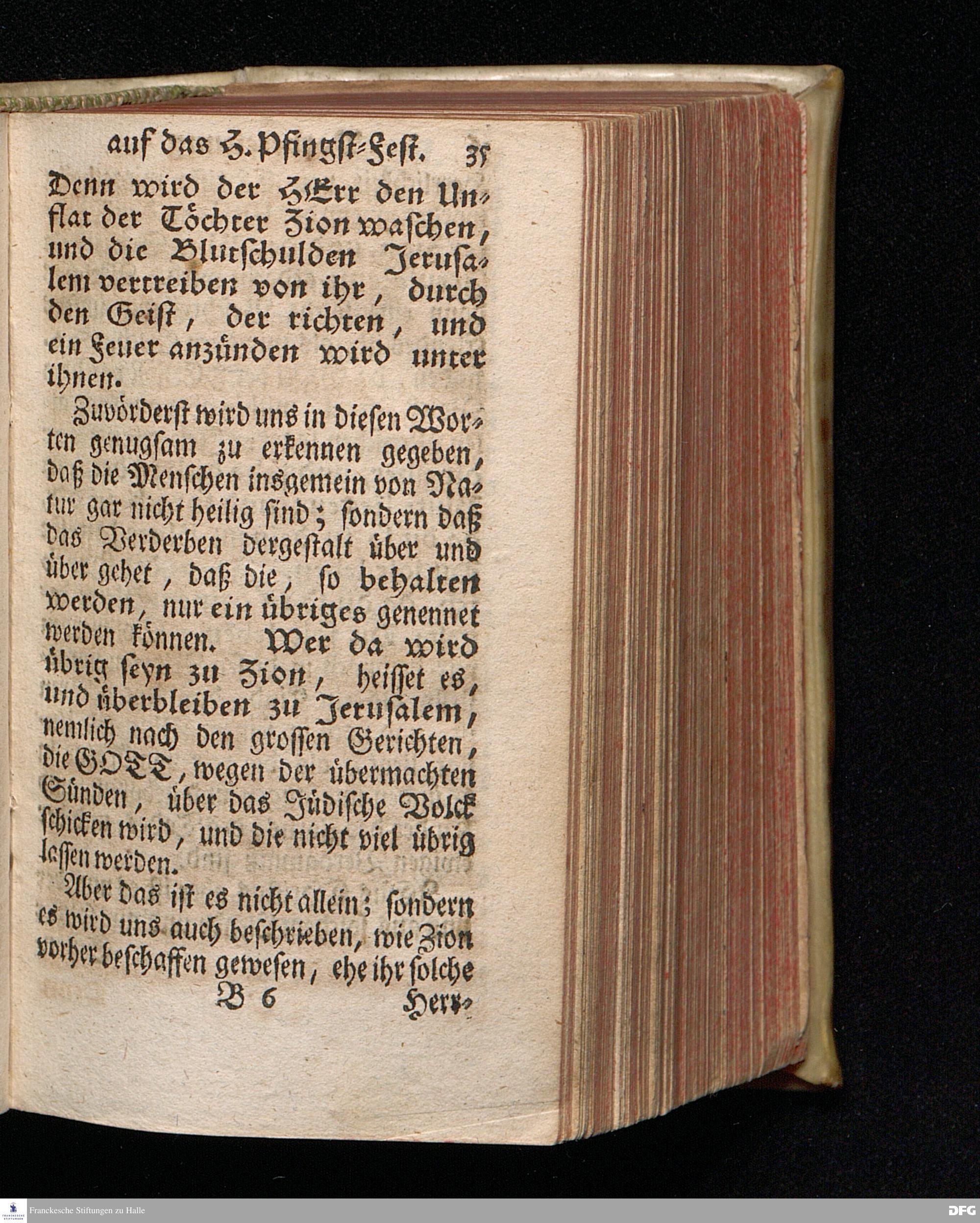 Vorbereitung auf das Heilige Pfingst=Fest / über Jes.IV, 2--6. den 18ten Mai. MDCCXX. In volckreicher Versammlung auf dem Wäysenhause zu Glaucha an Halle ertheilet von August Hermann Francken / S.Theol.Prof.Past.Ulr.& Schol. HALLE, In Verlegung des Wäysenhauses, MDCCXXII.