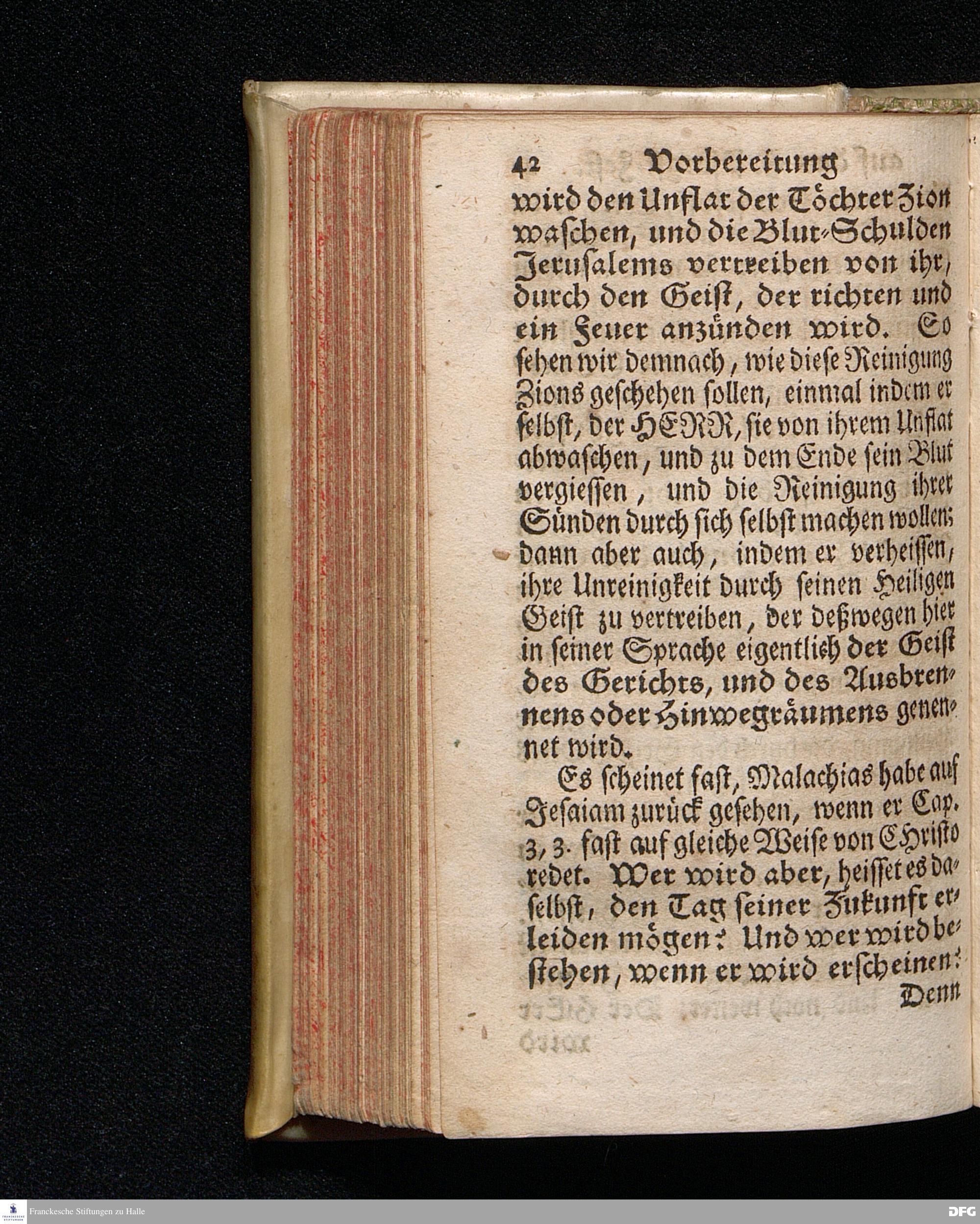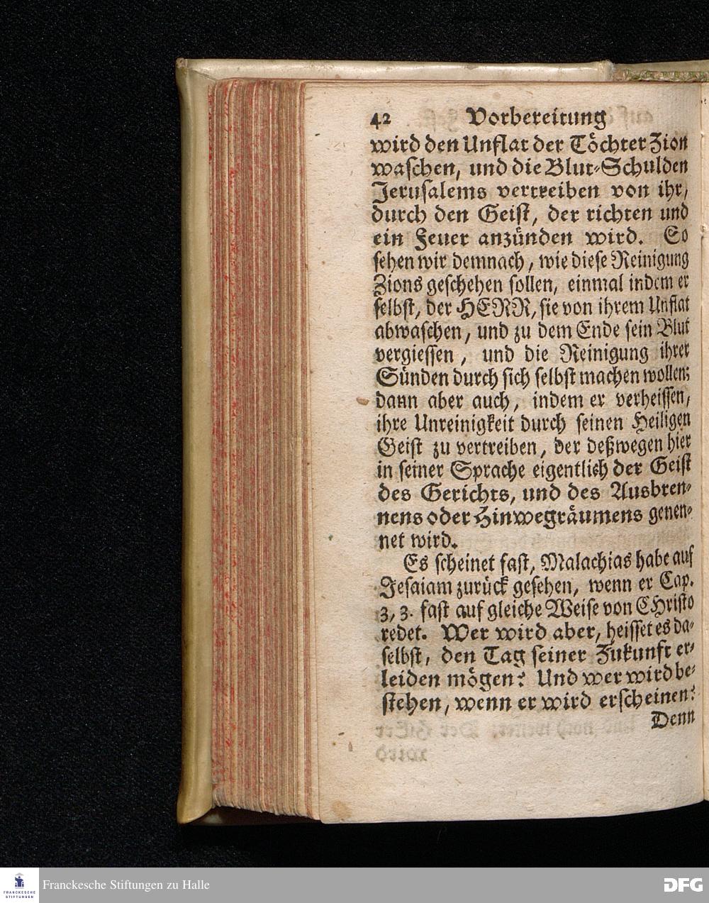 Vorbereitung auf das Heilige Pfingst=Fest / über Jes.IV, 2--6. den 18ten Mai. MDCCXX. In volckreicher Versammlung auf dem Wäysenhause zu Glaucha an Halle ertheilet von August Hermann Francken / S.Theol.Prof.Past.Ulr.& Schol. HALLE, In Verlegung des Wäysenhauses, MDCCXXII.