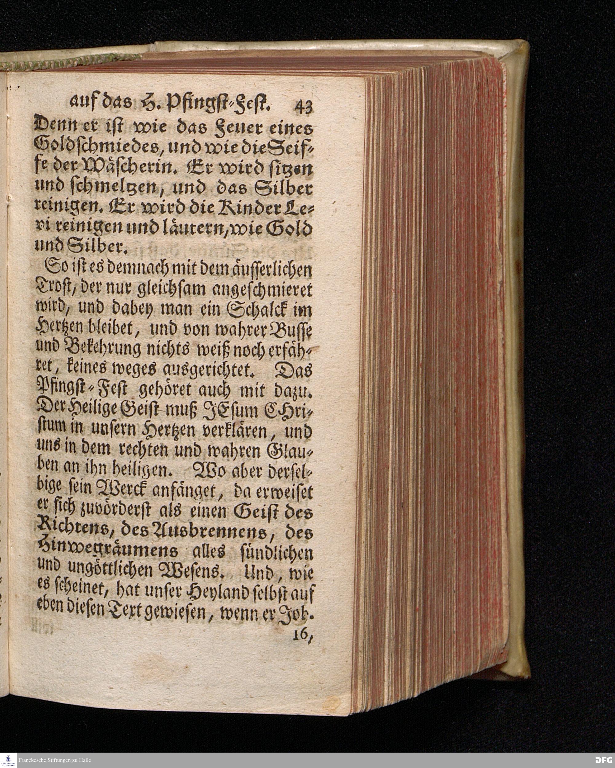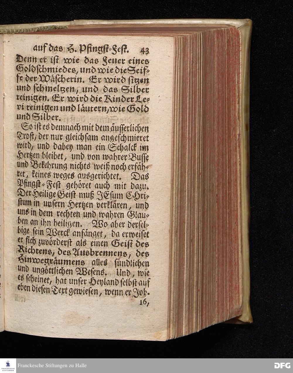 Vorbereitung auf das Heilige Pfingst=Fest / über Jes.IV, 2--6. den 18ten Mai. MDCCXX. In volckreicher Versammlung auf dem Wäysenhause zu Glaucha an Halle ertheilet von August Hermann Francken / S.Theol.Prof.Past.Ulr.& Schol. HALLE, In Verlegung des Wäysenhauses, MDCCXXII.