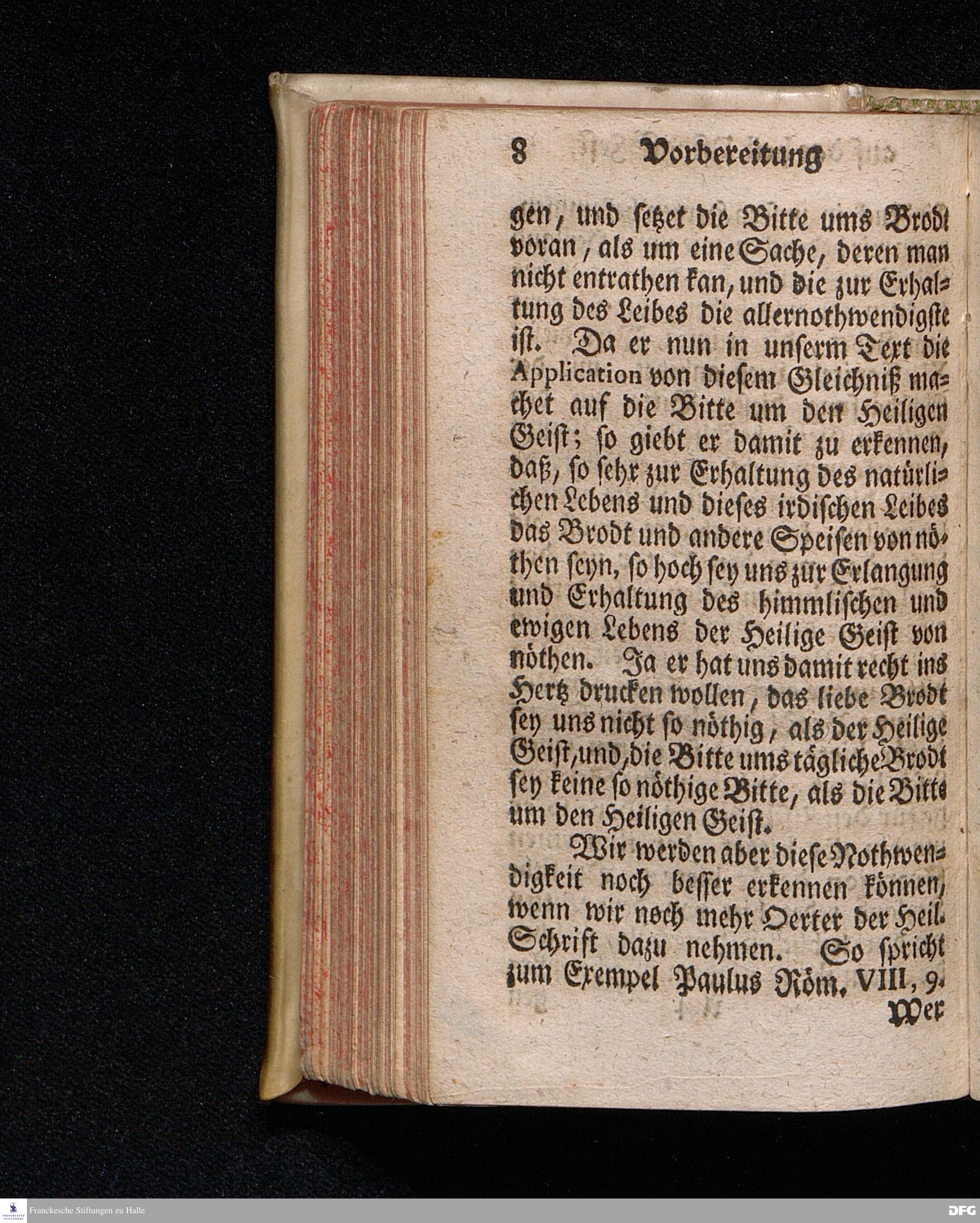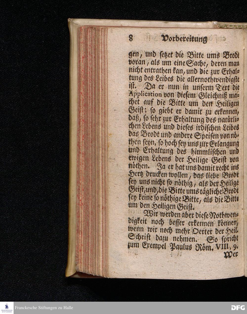 Vorbereitung auf das Heilige Pfingst=Fest / Den 26ten Maji 1719. nach Anleitung der Worte Luc.XI, 13. [Bibelzitat.] in Volckreicher Versammlung Auf dem Wäysen=Hause zu Glaucha an Halle gegeben von August Hermann Francken / SS.Theol.Prof.Past.Vlr.& Scholarcha. Die II.Auflage. HALLE, In Verlegung des Wäysen=Hauses. 1730.