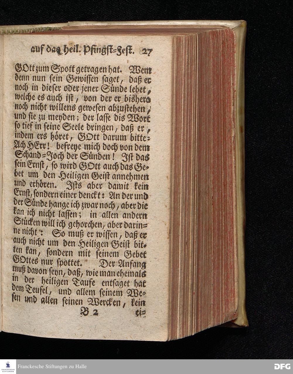 Vorbereitung auf das Heilige Pfingst=Fest / Den 26ten Maji 1719. nach Anleitung der Worte Luc.XI, 13. [Bibelzitat.] in Volckreicher Versammlung Auf dem Wäysen=Hause zu Glaucha an Halle gegeben von August Hermann Francken / SS.Theol.Prof.Past.Vlr.& Scholarcha. Die II.Auflage. HALLE, In Verlegung des Wäysen=Hauses. 1730.
