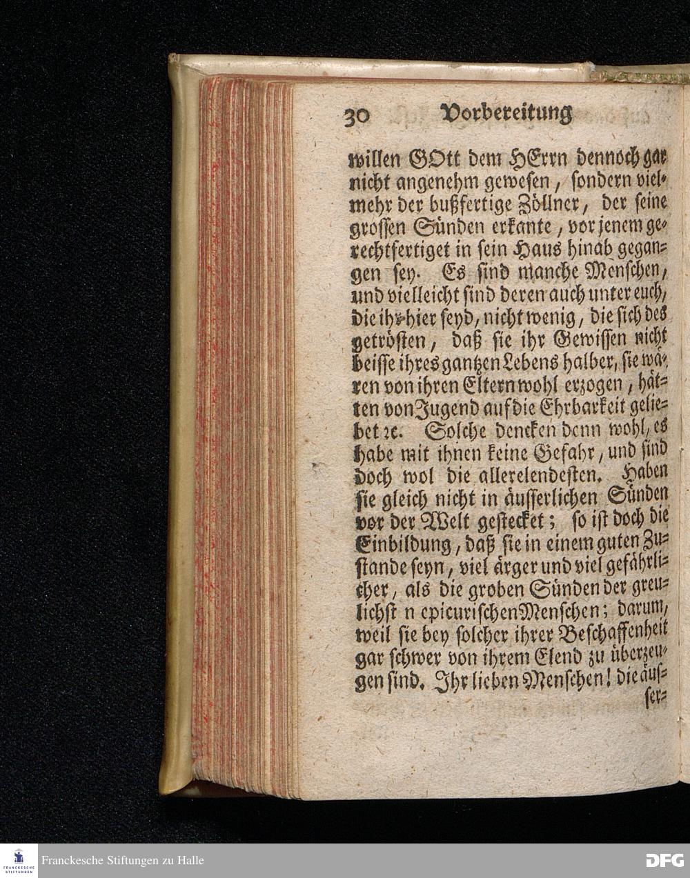 Vorbereitung auf das Heilige Pfingst=Fest / Den 26ten Maji 1719. nach Anleitung der Worte Luc.XI, 13. [Bibelzitat.] in Volckreicher Versammlung Auf dem Wäysen=Hause zu Glaucha an Halle gegeben von August Hermann Francken / SS.Theol.Prof.Past.Vlr.& Scholarcha. Die II.Auflage. HALLE, In Verlegung des Wäysen=Hauses. 1730.