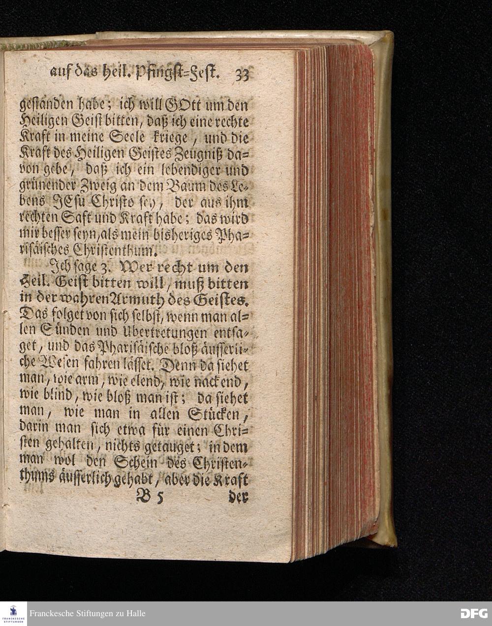 Vorbereitung auf das Heilige Pfingst=Fest / Den 26ten Maji 1719. nach Anleitung der Worte Luc.XI, 13. [Bibelzitat.] in Volckreicher Versammlung Auf dem Wäysen=Hause zu Glaucha an Halle gegeben von August Hermann Francken / SS.Theol.Prof.Past.Vlr.& Scholarcha. Die II.Auflage. HALLE, In Verlegung des Wäysen=Hauses. 1730.