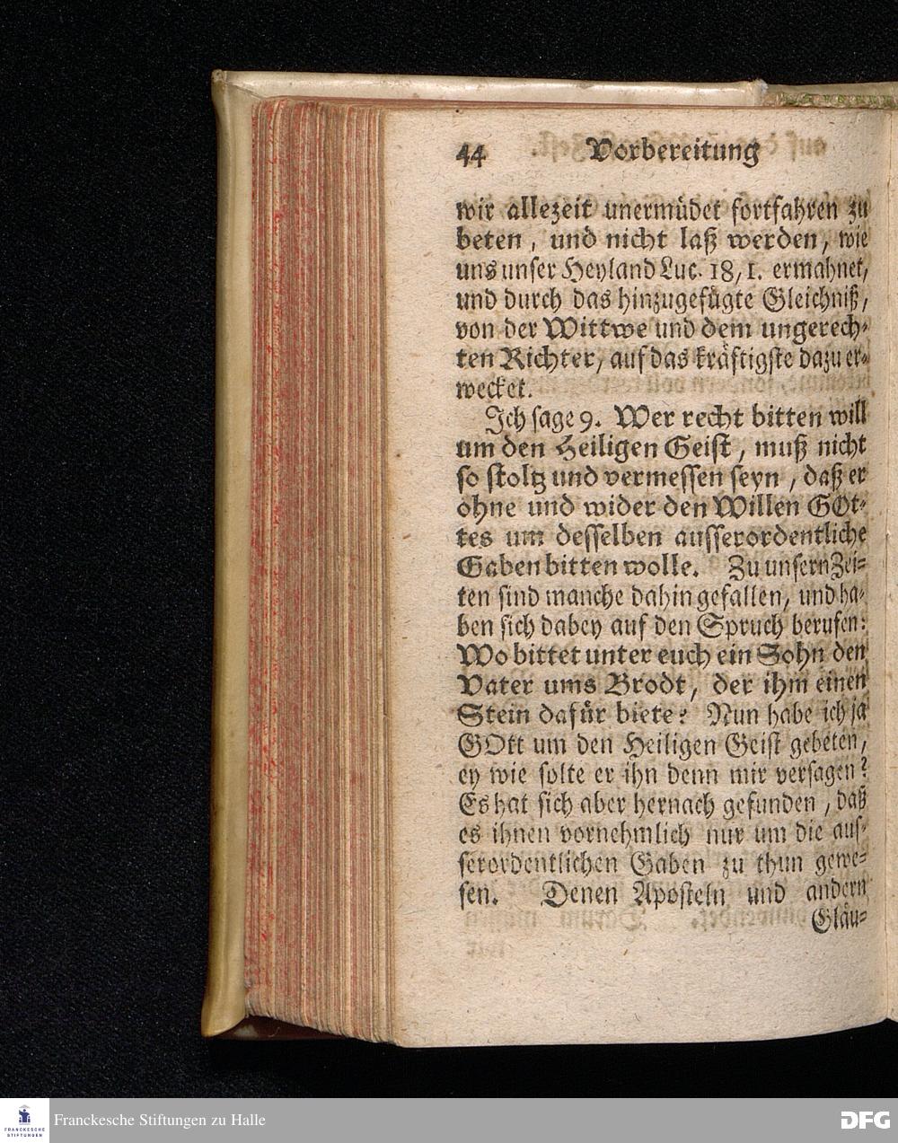 Vorbereitung auf das Heilige Pfingst=Fest / Den 26ten Maji 1719. nach Anleitung der Worte Luc.XI, 13. [Bibelzitat.] in Volckreicher Versammlung Auf dem Wäysen=Hause zu Glaucha an Halle gegeben von August Hermann Francken / SS.Theol.Prof.Past.Vlr.& Scholarcha. Die II.Auflage. HALLE, In Verlegung des Wäysen=Hauses. 1730.